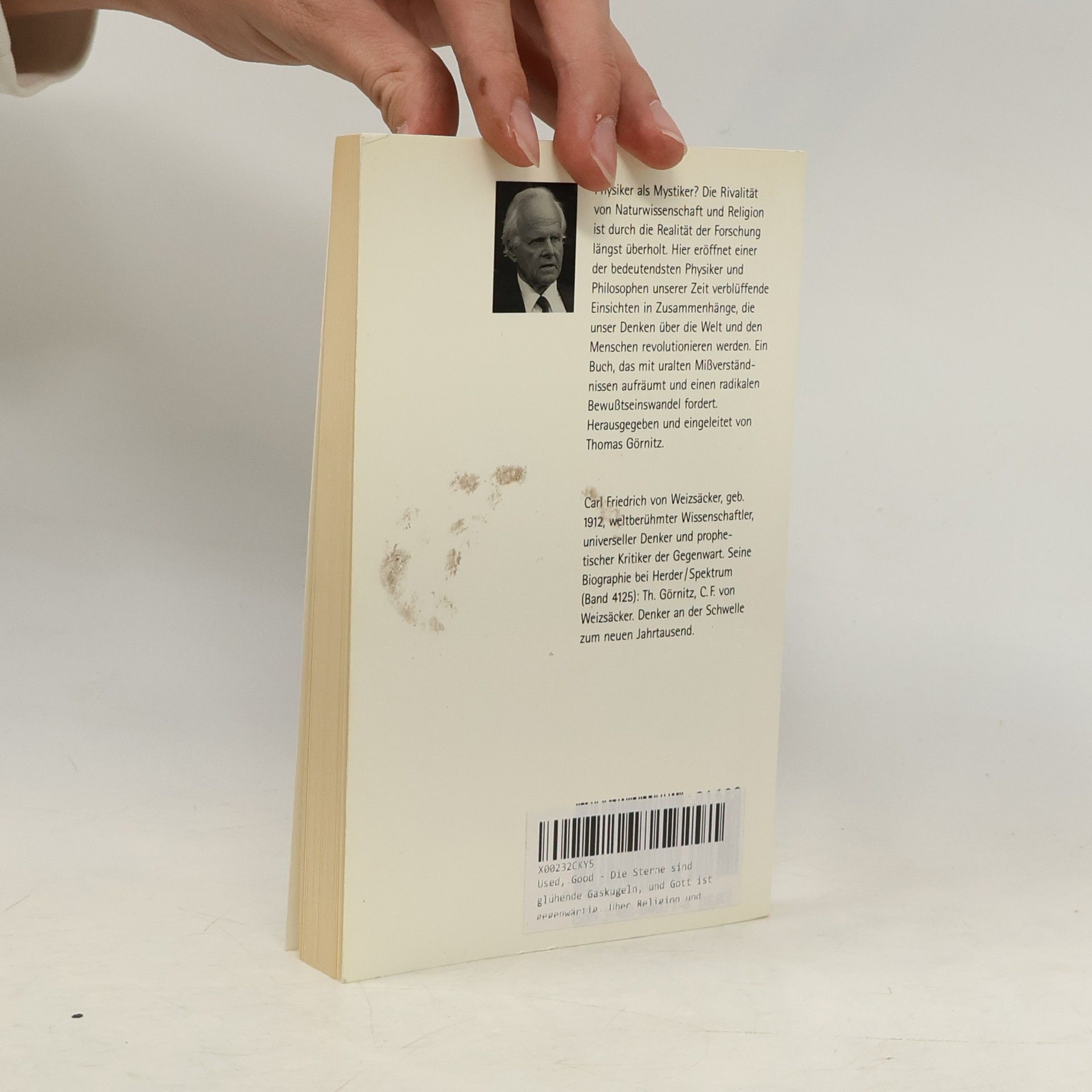 Physiker als Mystiker? Die Rivalität von Naturwissenschaft und Religion ist durch die Realität der Forschung längst überholt. Hier eröffnet einer der bedeutendsten Physiker und Philosophen unserer Zeit verblüffende Einsichten in Zusammenhänge, die unser Denken über die Welt und den Menschen revolutionieren werden. Ein Buch, das mit uralten Mißverständnissen aufräumt und einen radikalen Bewußtseinswandel fordert. Herausgegeben und eingeleitet von Thomas Görnitz.Carl Friedrich von Weizsäcker, geb. 1912, weltberühmter Wissenschaftler, universeller Denker und prophetischer Kritiker der Gegenwart. Seine Biographie bei Herder/Spektrum (Band 4125): Th. Görnitz, C. F von Weizsäcker. Denker an der Schwelle zum neuen Jahrtausend.