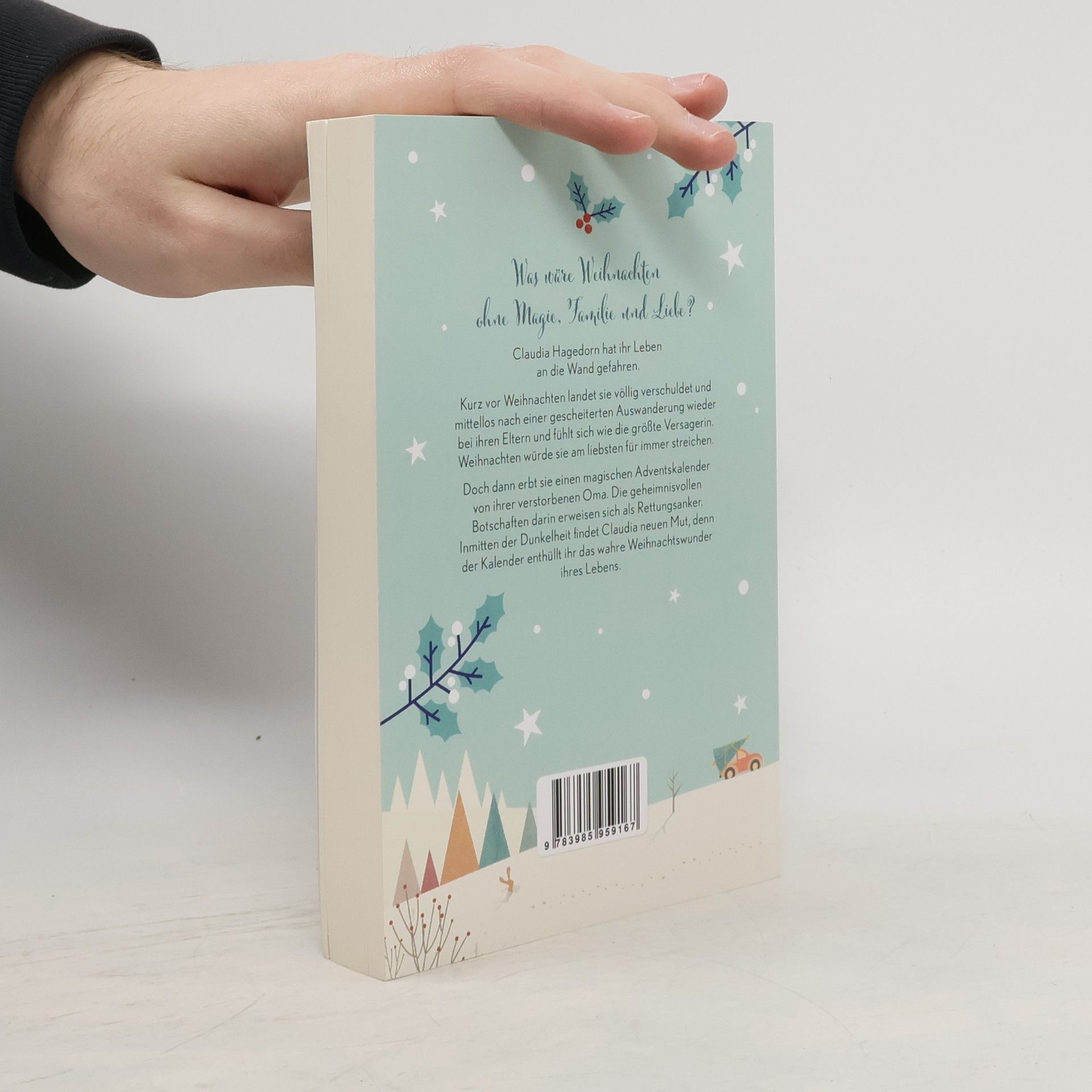Was wäre Weihnachten ohne Magie, Familie und Liebe? Claudia Hagedorn hat ihr Leben an die Wand gefahren. Kurz vor Weihnachten landet sie völlig verschuldet und mittellos nach einer gescheiterten Auswanderung wieder bei ihren Eltern und fühlt sich wie die größte Versagerin. Weihnachten würde sie am liebsten für immer streichen. Doch dann erbt sie einen magischen Adventskalender von ihrer verstorbenen Oma. Die geheimnisvollen Botschaften darin erweisen sich als Rettungsanker. Inmitten der Dunkelheit findet Claudia neuen Mut, denn der Kalender enthüllt ihr das wahre Weihnachtswunder ihres Lebens.