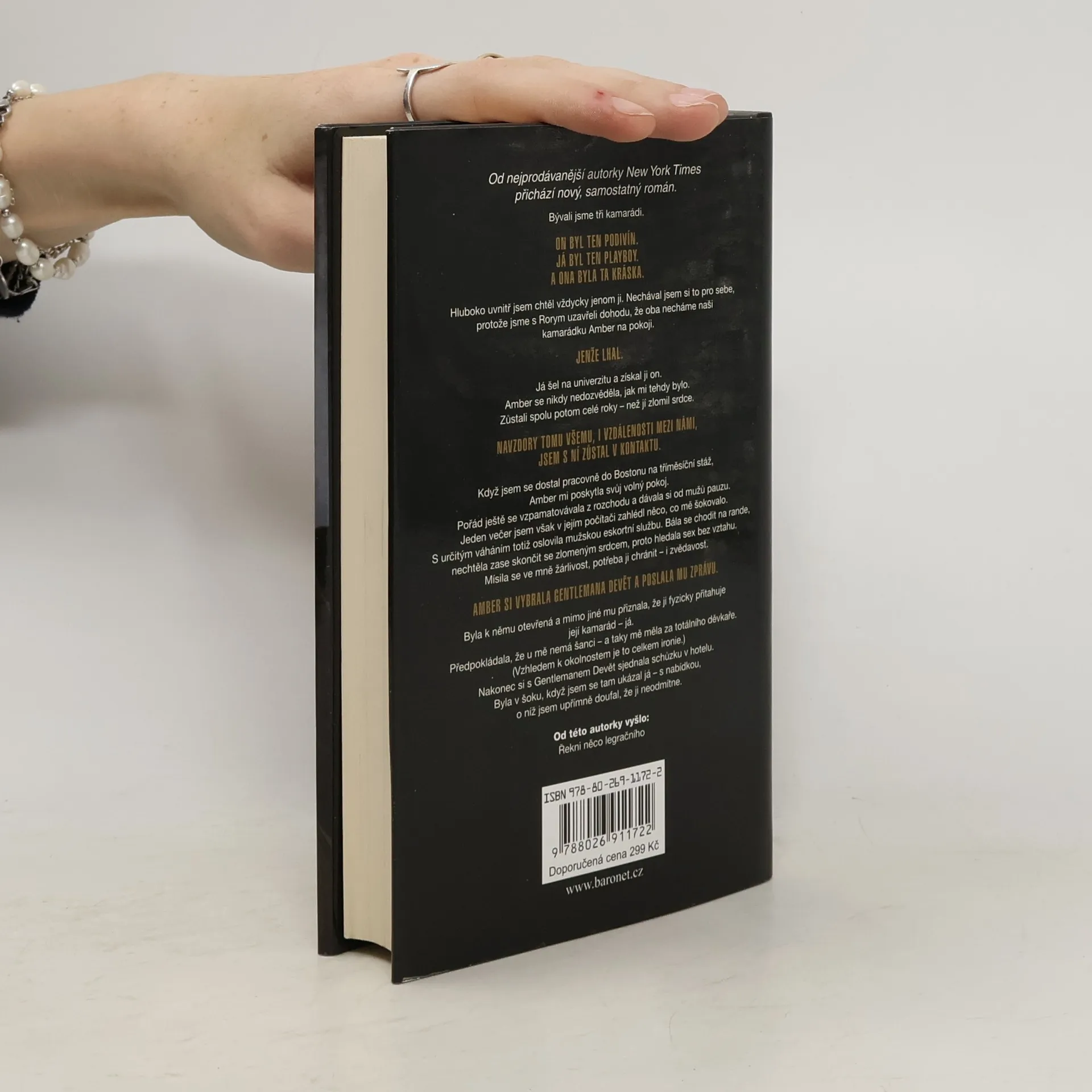 Bývali jsme tři kamarádi. On byl ten podivín. Já byl ten playboy. A ona byla ta kráska. Hluboko uvnitř jsem chtěl vždycky jenom ji. Nechával jsem si to pro sebe, protože jsme s Rorym uzavřeli dohodu, že oba necháme naši kamarádku Amber na pokoji. Jenže lhal. Já šel na univerzitu a získal ji on. Amber se nikdy nedozvěděla, jak mi tehdy bylo. Zůstali spolu potom celé roky – než jí zlomil srdce. Navzdory tomu všemu, i vzdálenosti mezi námi, jsem s ní zůstal v kontaktu. Když jsem se dostal pracovně do Bostonu na tříměsíční stáž, Amber mi poskytla svůj volný pokoj. Pořád se ještě vzpamatovávala z rozchodu a dávala si od mužů pauzu. Jeden večer jsem však v jejím počítači zahlédl něco, co mě šokovalo. S určitým váháním totiž oslovila mužskou eskortní službu. Bála se chodit na rande, nechtěla zas skončit se zlomeným srdcem, proto hledala sex bez vztahu. Mísila se ve mně žárlivost, potřeba ji chránit – i zvědavost. Amber si vybrala Gentlemana Devět a zaslala mu zprávu. Byla k němu otevřená a mimo jiné mu přiznala, že ji fyzicky přitahuje její kamarád – já. Předpokládala, že u mě nemá šanci – a taky mě měla za totálního děvkaře. (Vzhledem k okolnostem je to celkem ironie.) Nakonec si s Gentlemanem Devět sjednala schůzku v hotelu. Byla v šoku, když jsem se tam ukázal já – s nabídkou, o níž jsem upřímně doufal, že ji neodmítne.