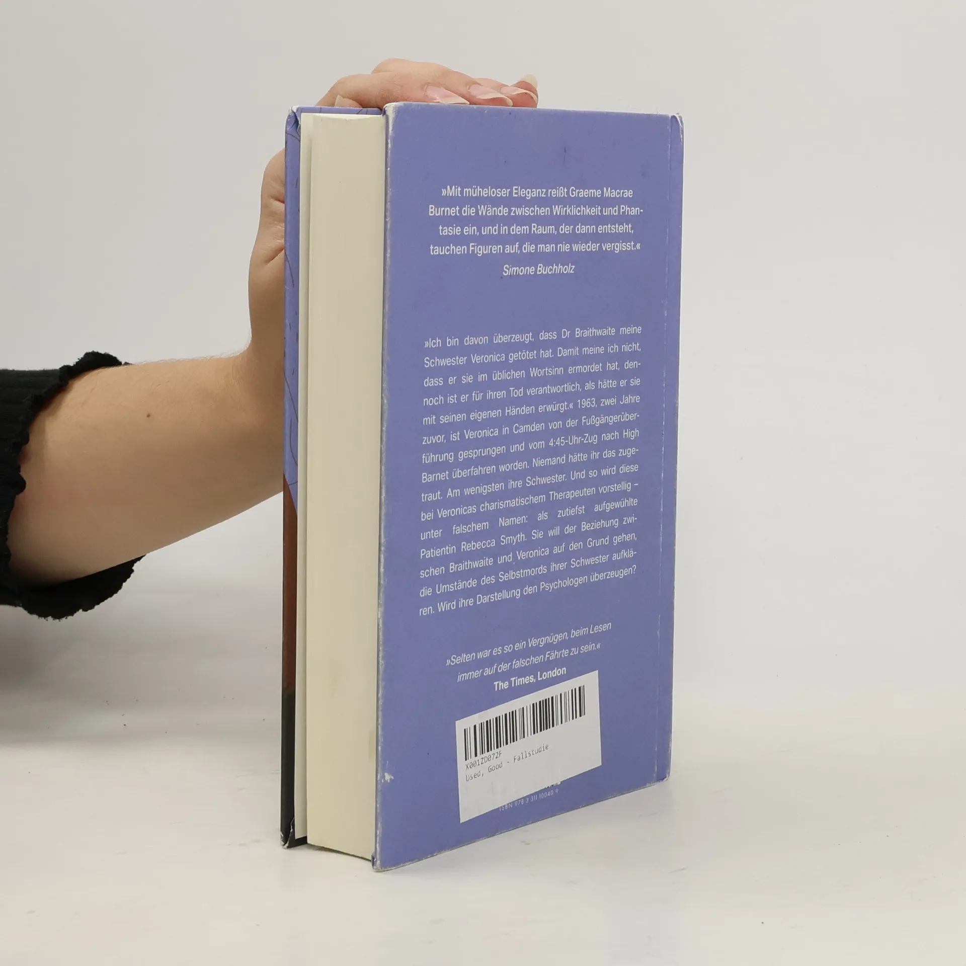 »Ich bin davon überzeugt, dass Dr Braithwaite meine Schwester Veronica getötet hat. Damit meine ich nicht, dass er sie im üblichen Wort- sinn ermordet hat, dennoch ist er für ihren Tod verantwortlich, als hätte er sie mit seinen eigenen Händen erwürgt.« Zwei Jahre zuvor, im Herbst 1963, ist Veronica am Bridge Approach in Camden von einer Überführung gesprungen und vom 4:45-Uhr-Zug nach High Barnet überfahren worden. Niemand hätte ihr das zugetraut. Am wenigsten ihre Schwester. Und so wird diese bei Dr Braithwaite, Veronicas charismatischem Therapeuten, vorstellig, allerdings unter falschem Namen: als zutiefst aufgewühlte Patientin Rebecca Smyth. Sie ist entschlossen, der seltsamen Beziehung zwischen Braithwaite und Veronica auf den Grund zu gehen, die Umstände des Selbstmords ihrer Schwester zu klären. Wird ihre Darstellung den Psychologen überzeugen? Ein hochspannendes Katz-und-Maus-Spiel zwischen einem Therapeuten und seiner Patientin. Was ist wahr, was Täuschung? Wer ist wer, wer glaubt wem was – und was dürfen, was können wir Leser glauben?