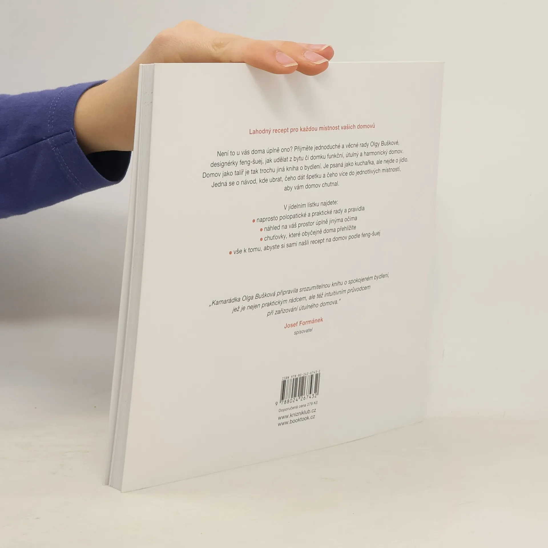 Domov je jako talíř a záleží jen na vás, co si nandáte. Není to u vás doma úplně ono? V této knize najdete jednoduché a věcné rady k tomu, jak udělat z bytu či domku funkční, útulný a harmonický domov. Autorka Olga Bušková, terapeutka a designerka Feng-šuej, vás přehledně provede každým koutem a poradí vám, čeho dát špetku a čeho více do jednotlivých místností, aby vám domov „chutnal“. Sice vám doma neuklidí, ale dá vám recepty, jak si bydlení zútulnit s vtipem a elegancí.