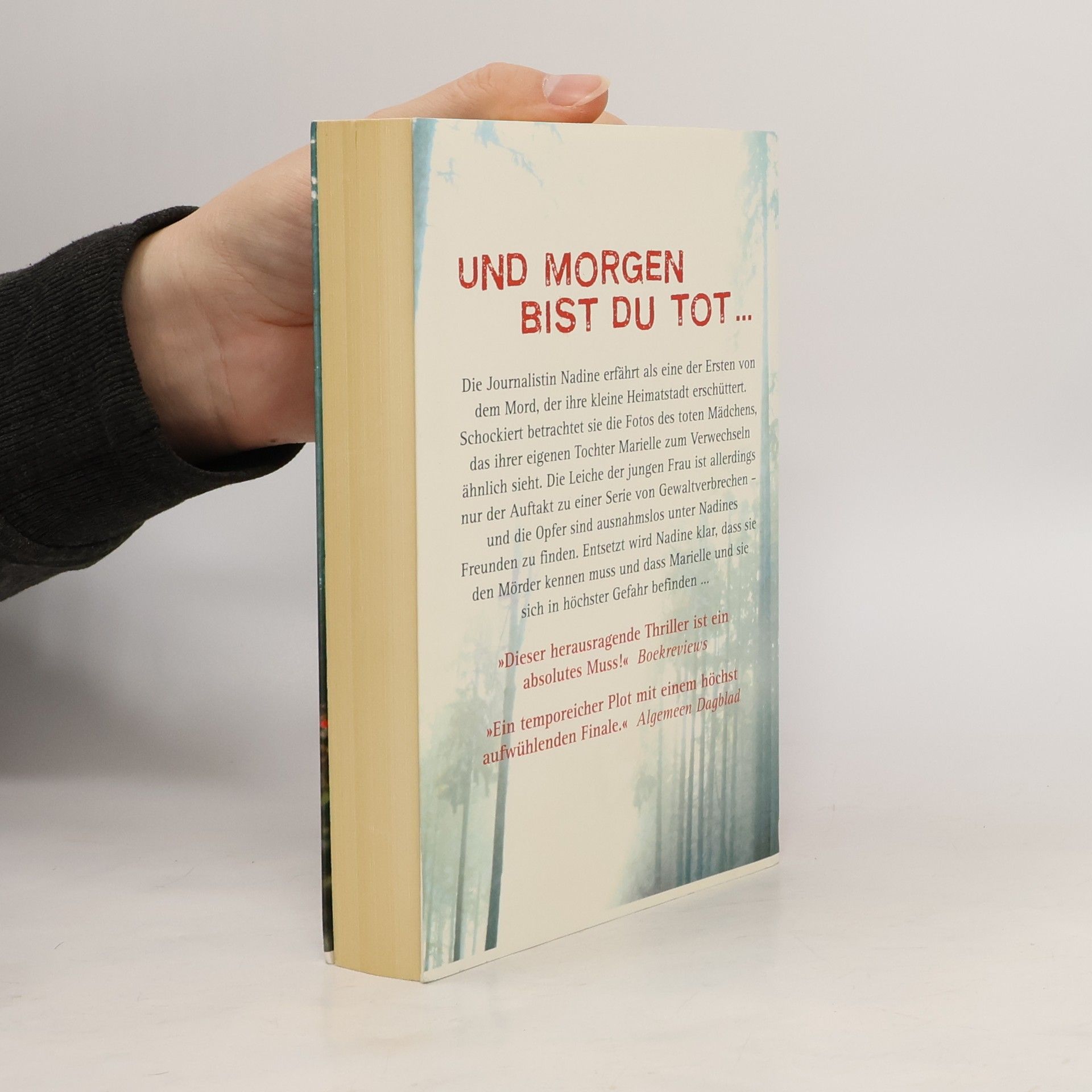 Und morgen bist du tot Die Journalistin Nadine erfährt als eine der Ersten von dem Mord, der ihre kleine Heimatstadt erschüttert. Schockiert betrachtet sie die Fotos des toten Mädchens, das ihrer eigenen Tochter Marielle zum Verwechseln ähnlich sieht. Die Leiche der jungen Frau ist allerdings nur der Auftakt zu einer Serie von Gewaltverbrechen - und die Opfer sind ausnahmslos unter Nadines Freunden zu finden. Entsetzt wird Nadine klar, dass sie den Mörder kennen muss und dass Marielle und sie sich in höchster Gefahr befinden ... Gerade hat die aufstrebende Schriftstellerin Nadine ihren ersten Krimi veröffentlicht, als sie plötzlich selbst in einem Thriller zu leben scheint. In ihrer niederländischen Heimatstadt Leiden geht ein Mörder um, der bereits eine junge Frau getötet hat. Und es bleibt nicht bei einer Leiche: Das nächste Opfer ist Nadines Freundin Joella, die nach einem Grillfest tot aufgefunden wird. Langsam schnürt die allgegenwärtige Angst Nadines Kehle zu, denn das Verbrechen weckt auch die dunklen Erinnerungen an den Unfalltod ihres Mannes, der nie richtig aufgeklärt wurde. Entsetzt fragt sich Nadine, ob der Mörder aus ihrem eigenen Umfeld stammen könnte. Die grausame Antwort bekommt sie nur wenige Tage später, als ihre Tochter Marielle nicht mehr von der Schule nach Hause kommt. Wer ist Feind, wer Freund? Einmal mehr zeigt sich Simone van der Vlugt als Meisterin des psychologischen Thrillers.