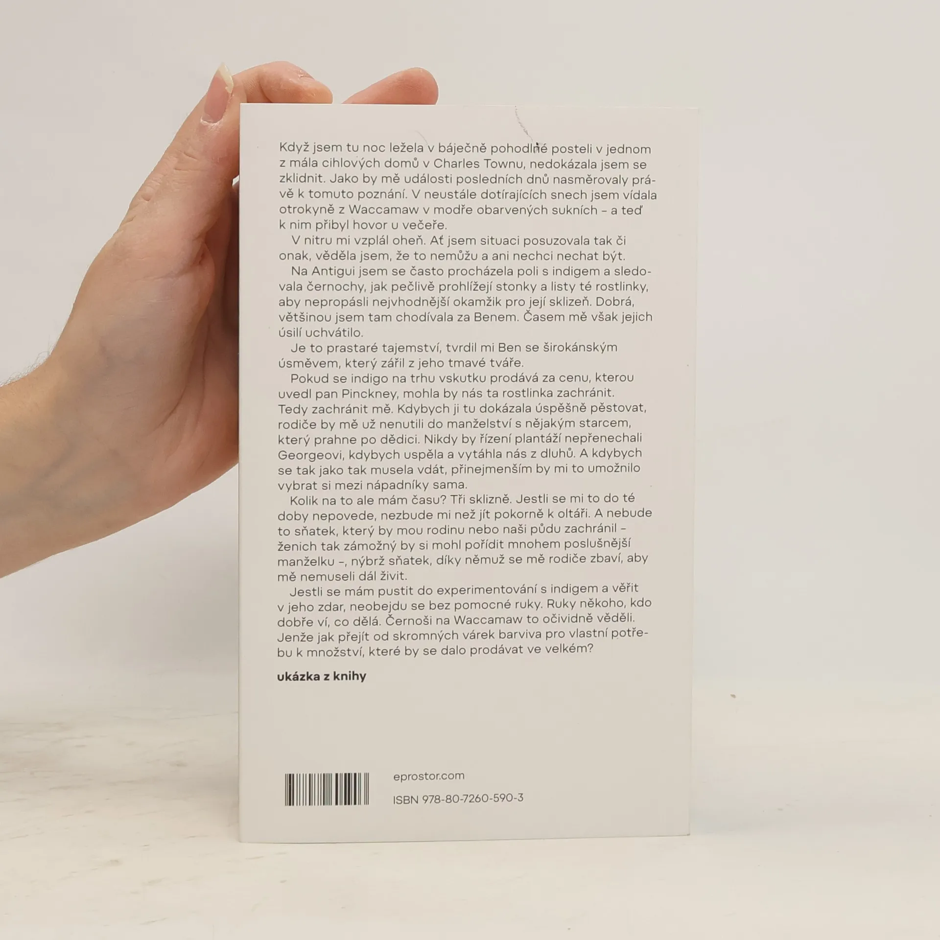 Příběh inspirovaný skutečnou postavou Elizy Lucasové, která přispěla k emancipaci budoucích Spojených států. Román osvětluje poměry panující na americkém Jihu na počátku osmnáctého století, vyznačující se bezprávím vůči ženám i otrokům. Rok 1739. Elize Lucasové je pouhých šestnáct, když ji otec pověří správou rodinných plantáží v Jižní Karolíně, zámořské kolonii britského krále Jiřího II. Poté odpluje bojovat za slávu Koruny a jeho opuštěná choť si nepřeje nic jiného, než vrátit se do Anglie. Dcera se sice hospodaření ujme, jenže osud kráčí matčinu přání vstříc. Eliza čelí hrozbě, že přijdou o všechno, avšak odmítne se vzdát. Sotva se dívka dozví, kolik Francouzi platí za indigové barvivo, nabude přesvědčení, že právě jeho produkce je klíčem k záchraně. Okolí ale jejímu snu nevěří, v pěstování původně západoafrické rostliny se žádný běloch nevyzná. Hrdinka zjišťuje, že jejími spojenci jsou jen starý zahradník, právník z města a černošský mladík, s nímž uzavře neslýchanou dohodu. On ji naučí indigo zpracovávat a ona - navzdory dobovým zákonům - naučí jeho druhy číst. Nakladatelská anotace. Kráceno.