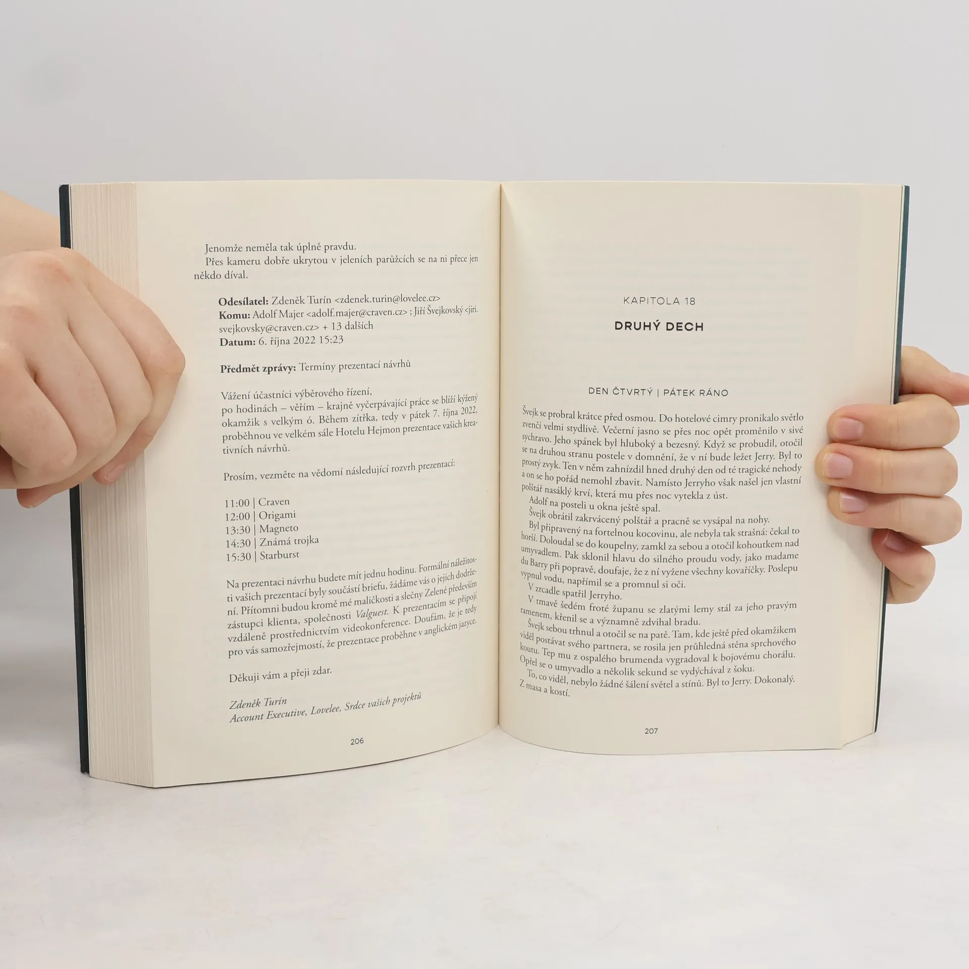 Příběh s tajemstvím o přípravě jedné reklamní kampaně, odehrávající se v lůně České Kanady. Adolf Majer má za sebou fakt mizerné čtyři měsíce života. Jeho manželka, instagramová hvězda @johankazparku, ho opustila kvůli jinému muži, a v reklamní agentuře Craven, v níž pracuje jako kreativní ředitel, kazí, na co sáhne. Se svými agenturními kolegy, ředitelem Švejkem a grafickou elévkou Julií, přijímají pozvání na netradiční výběrové řízení, které se má uskutečnit v hotelovém komplexu v okolí třeboňských rybníků, borových lesů a rozsáhlých rašelinišť. Nemají přitom nejmenší tušení, že kromě nápadů může během pobytu vyvěrat na povrch i něco mnohem temnějšího.