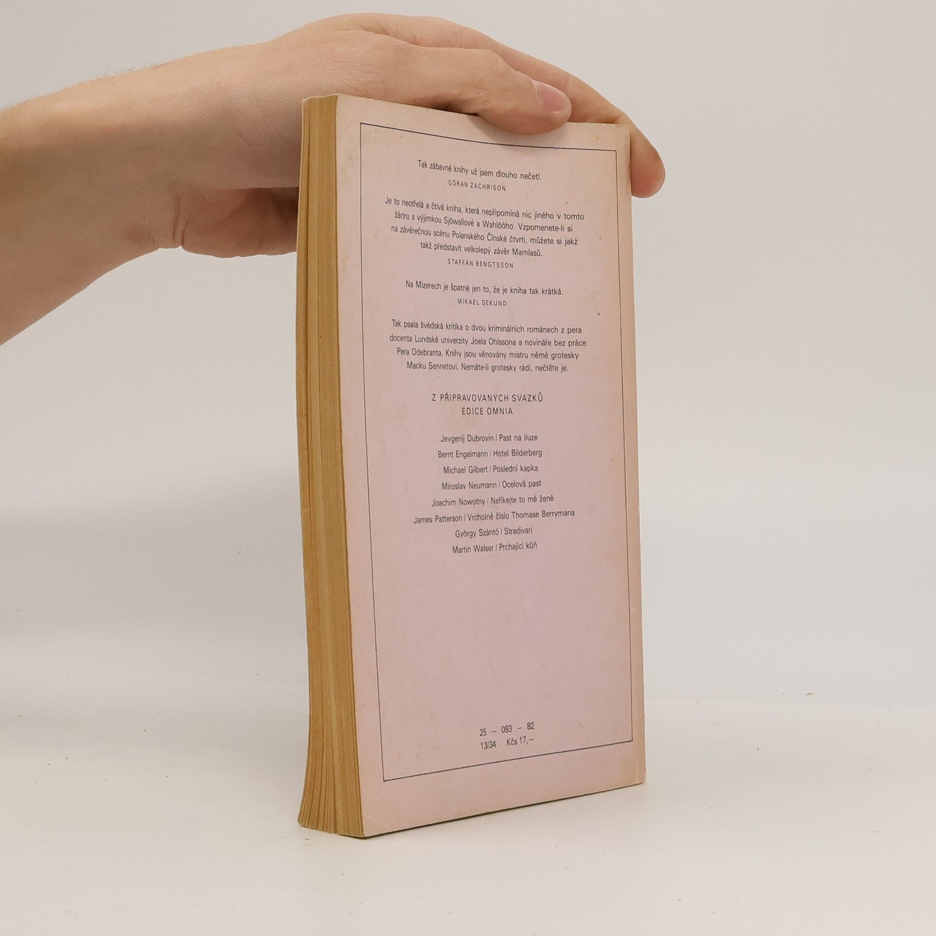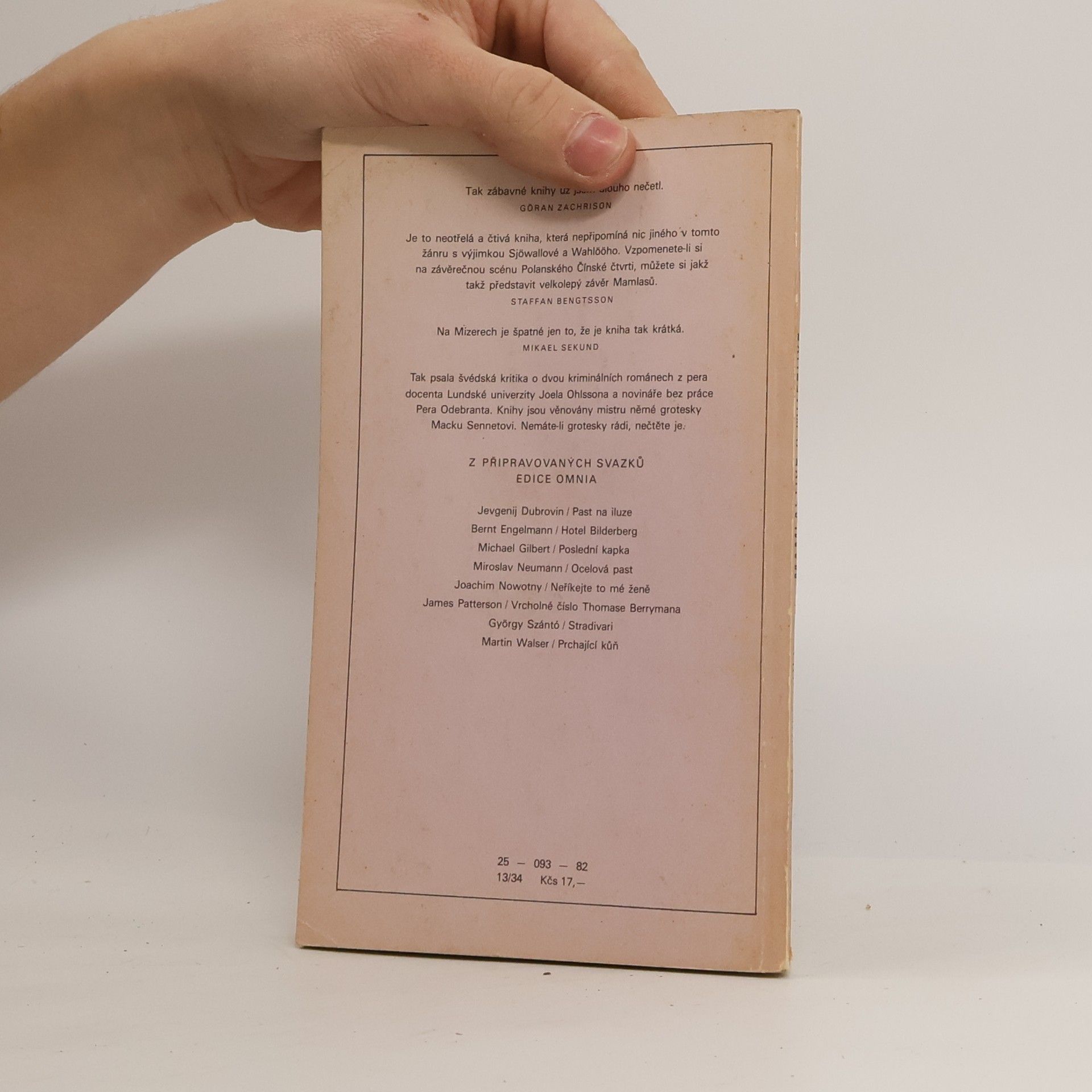Stala sa děsná spousta věcí. Zloději v kradeným autě házeli na policajty zápalný bomby, potom do něčeho nabourali a na místě zkapali. Pak se srazily dvě policejní auta, zdrhli dva vězni a jeden policajt je postřelenej. Kniha je věnována mistru němé grotesky Macku Sennetovi. Dva kriminální romány z pera docenta Lundské university Joela Ohlssona a novináře Pera Odebranta.