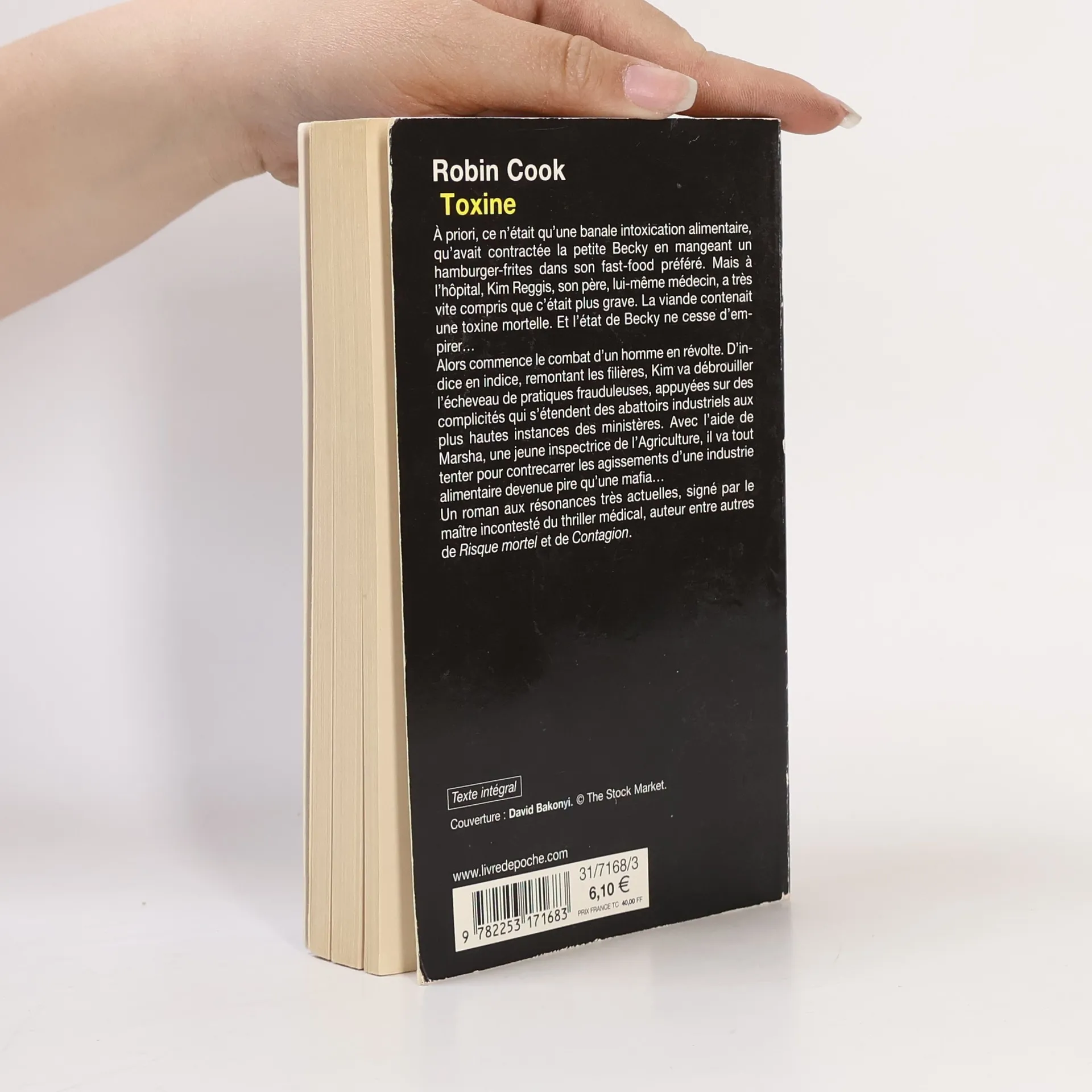 A priori, ce n'était qu'une banale intoxication alimentaire, qu'avait contractée la petite Becky en mangeant un hamburger-frites dans son fast-food préféré. Mais à l'hôpital, Kim Reggis, son père, lui-même médecin, a très vite compris que c'était plus grave. La viande contenait une toxine mortelle. Et l'état de Becky ne cesse d'empirer... Alors commence le combat d'un homme en révolte. D'indice en indice, remontant les filières, Kim va débrouiller l'écheveau de pratiques frauduleuses, appuyées sur des complicités qui s'étendent des abattoirs industriels aux plus hautes instances des ministères. Avec l'aide de Martha, une jeune inspectrice de l'Agriculture, il va tout tenter pour contrecarrer les agissements d'une industrie alimentaire devenue pire qu'une mafia... Un roman aux résonances très actuelles, signé par le maître incontesté du thriller médical, auteur entre autres de Risque mortel et de Contagion.