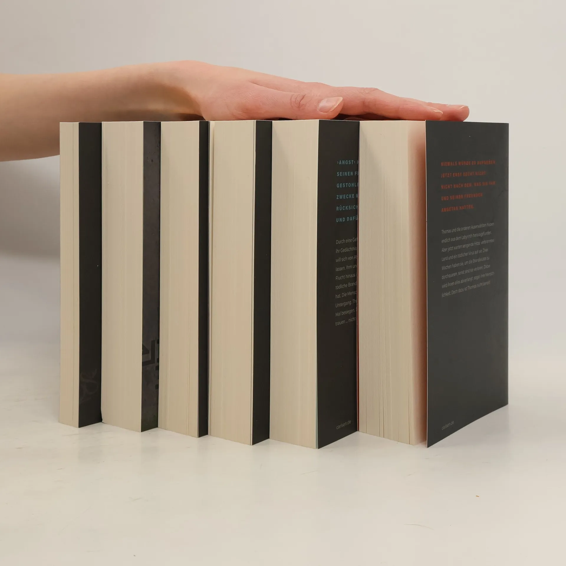 Die Buchreihe „Maze Runner 1-6“ von James Dashner umfasst die Abenteuer von Thomas und seinen Mitstreitern, die in einer dystopischen Welt gefangen sind. Die Geschichte beginnt mit Thomas, der ohne Erinnerungen in einem Labyrinth erwacht, umgeben von anderen Jugendlichen, die ebenfalls in einem ähnlichen Zustand sind. Gemeinsam versuchen sie, die Geheimnisse des Labyrinths zu entschlüsseln und einen Ausweg zu finden. Die zentralen Themen der Reihe sind Überleben, Freundschaft, Identität und der Kampf gegen unterdrückende Systeme. Die Charaktere, darunter Teresa, Minho und Newt, entwickeln sich im Laufe der Geschichte weiter und stehen vor moralischen Entscheidungen, die ihre Beziehungen und das Schicksal der Gruppe beeinflussen. Im Verlauf der sechs Bände wird die Handlung komplexer, da die Protagonisten mit der Wahrheit über die Welt außerhalb des Labyrinths konfrontiert werden und sich gegen die Organisation WCKD zur Wehr setzen müssen. Die Erzählung kombiniert Elemente von Science-Fiction, Thriller und Abenteuer und bietet einen tiefen Einblick in die menschliche Psyche unter extremen Bedingungen. Die Reihe ist für Leser, die an spannenden, actiongeladenen Geschichten mit tiefgründigen Themen interessiert sind, geeignet.