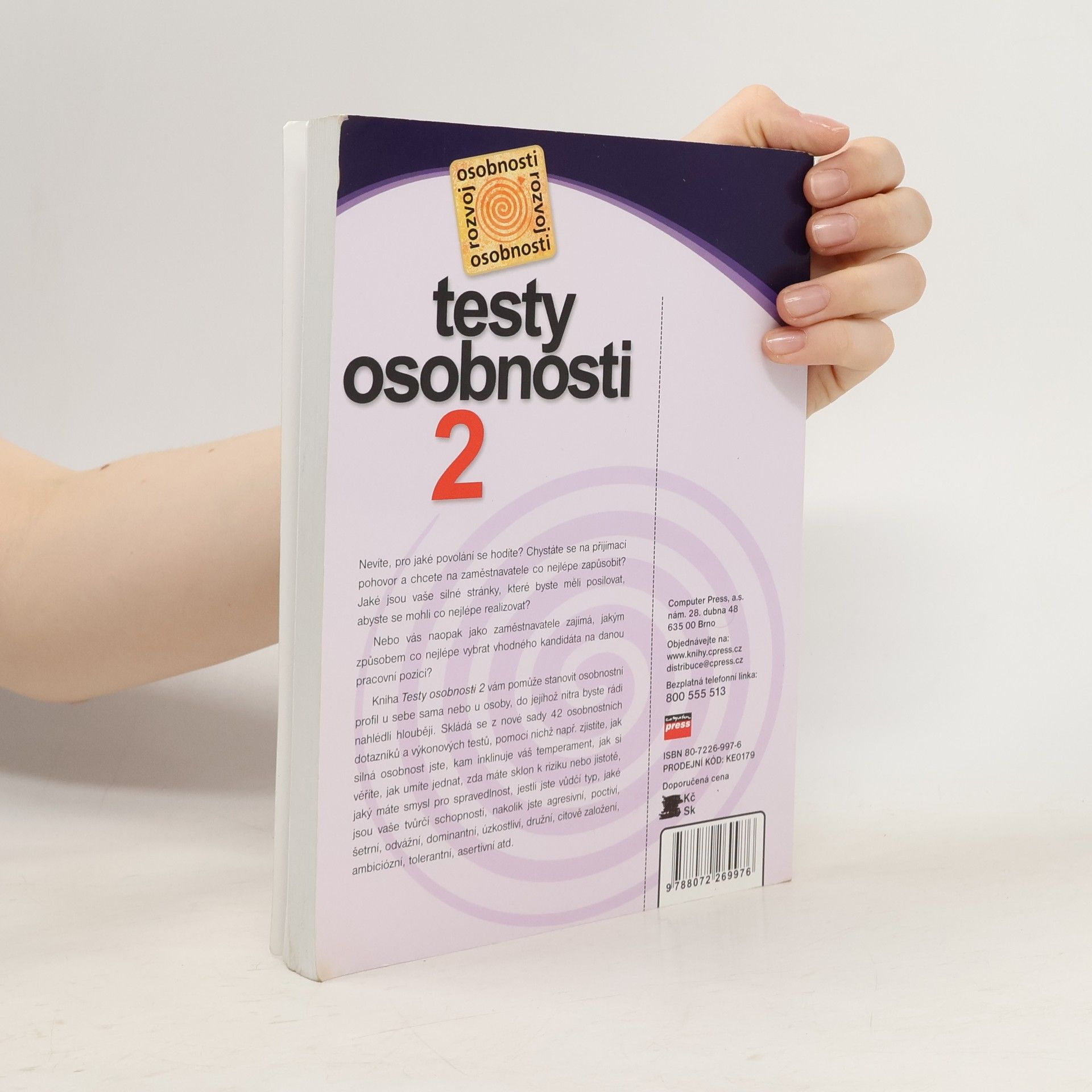 Kniha Testy osobnosti 2 vám pomůže stanovit osobnostní profil u sebe sama nebo u osoby, do jejíhož nitra byste rádi nahlédli hlouběji. Skládá se z nové sady 42 osobnostních dotazníků a výkonových testů, pomocí nichž např. zjistíte, jak silná osobnost jste, kam inklinuje váš temperament, jak si věříte, jak umíte jednat, zda inklinujete k riziku nebo jistotě, jaký máte smysl pro spravedlnost, jestli jste vůdčí typ, jaké jsou vaše tvůrčí schopnosti, nakolik jste agresivní, poctiví, šetrní, odvážní, dominantní, úzkostliví, družní, citově založení, ambiciózní, tolerantní, asertivní atd.