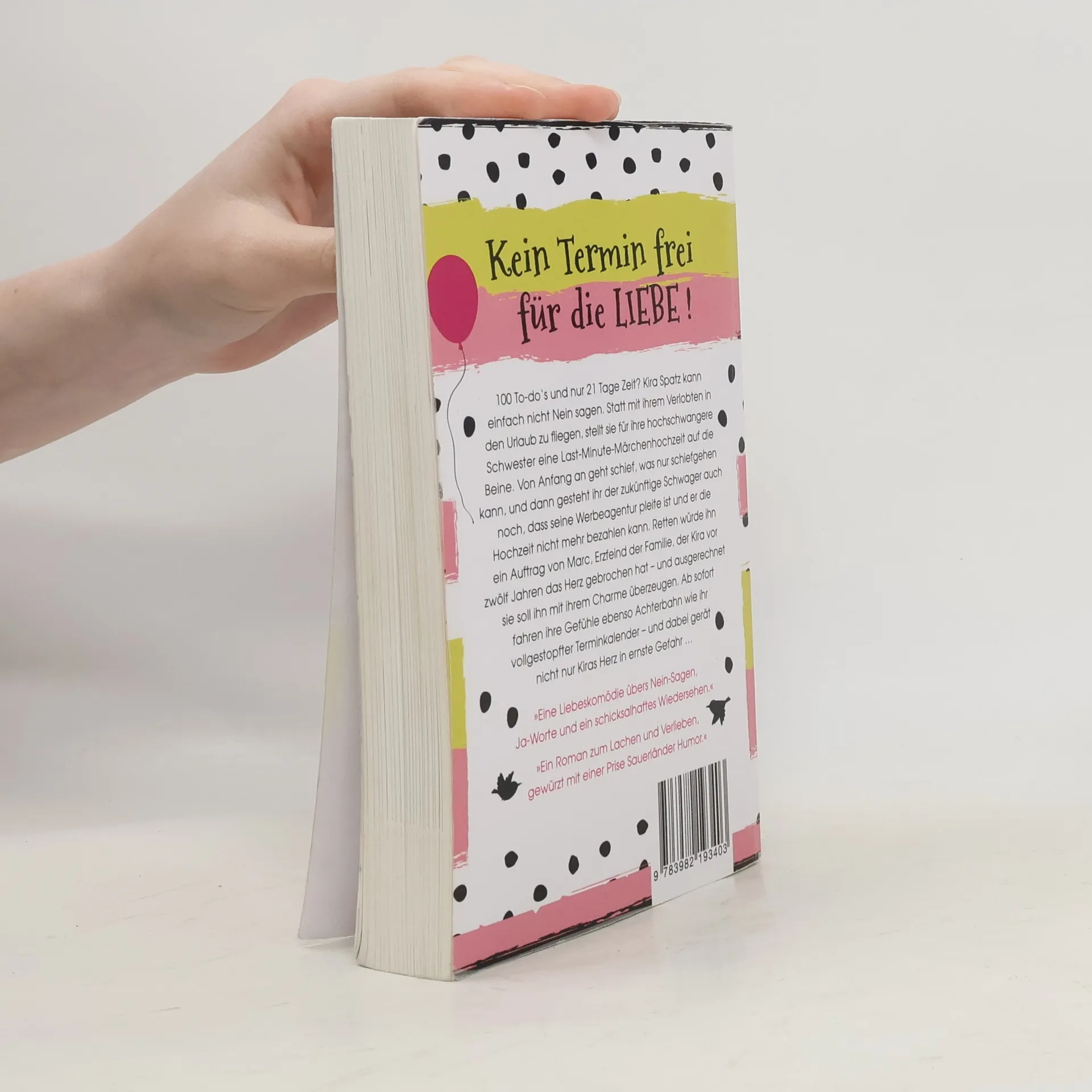 100 To-do´s und nur 21 Tage Zeit? Kira Spatz kann einfach nicht Nein sagen. Statt mit ihrem Verlobten in den Urlaub zu fliegen, stellt sie für ihre hochschwangere Schwester eine Last-Minute-Märchenhochzeit auf die Beine. Von Anfang an geht schief, was nur schiefgehen kann, und dann gesteht ihr der zukünftige Schwager auch noch, dass seine Werbeagentur pleite ist und er die Hochzeit nicht bezahlen kann. Retten würde ihn ein Auftrag von Marc, Erzfeind der Familie, der Kira vor zwölf Jahren das Herz gebrochen hat - und ausgerechnet sie soll ihn mit ihrem Charme überzeugen. Ab sofort fahren ihre Gefühle ebenso Achterbahn wie ihr vollgestopfter Terminkalender - und dabei gerät nicht nur Kiras Herz in ernste Gefahr ..."Eine turbulente Liebeskomödie übers Nein-Sagen, Ja-Worte und ein schicksalhaftes Wiedersehen.""Ein Roman zum Lachen und Verlieben, gewürzt mit einer Prise Sauerländer Humor."