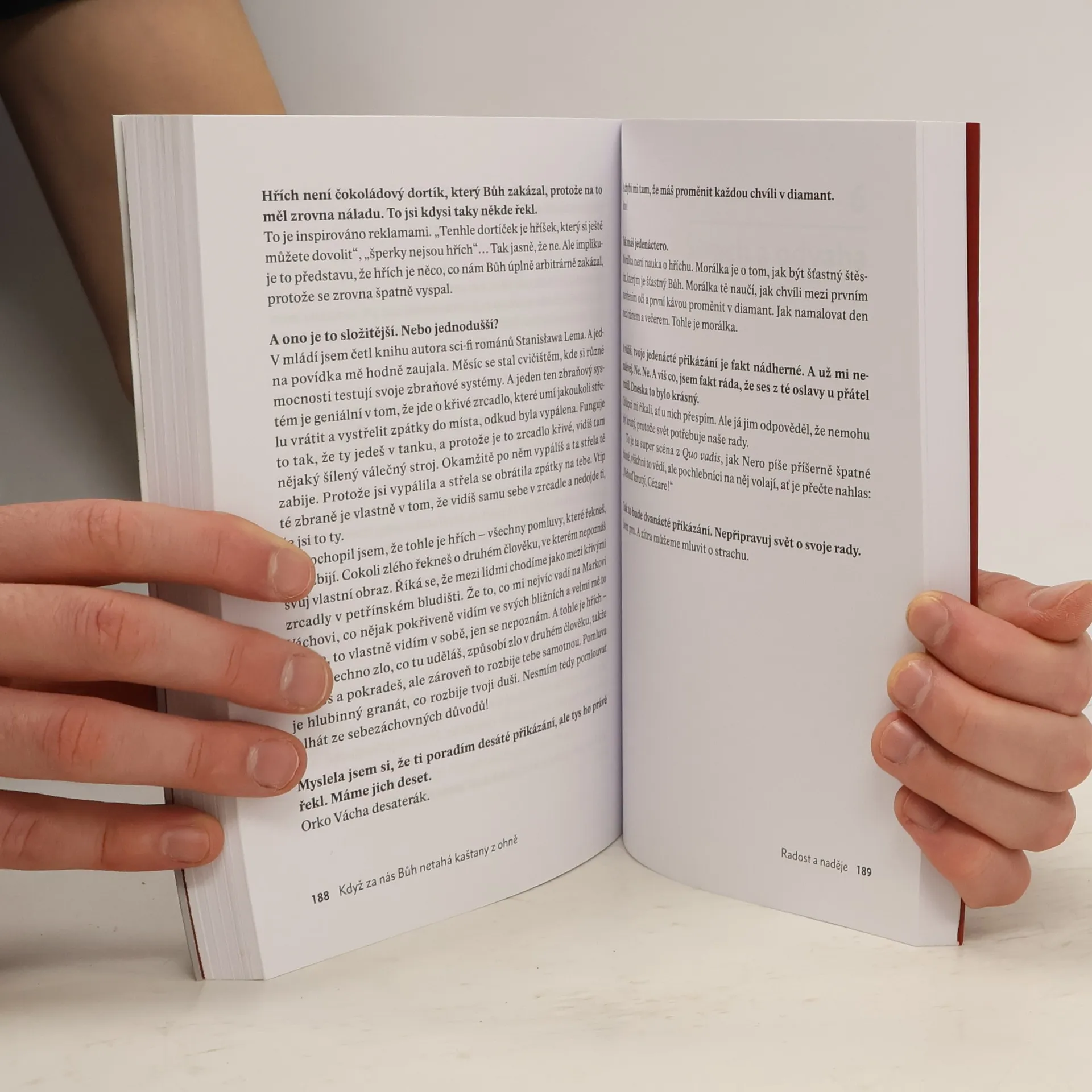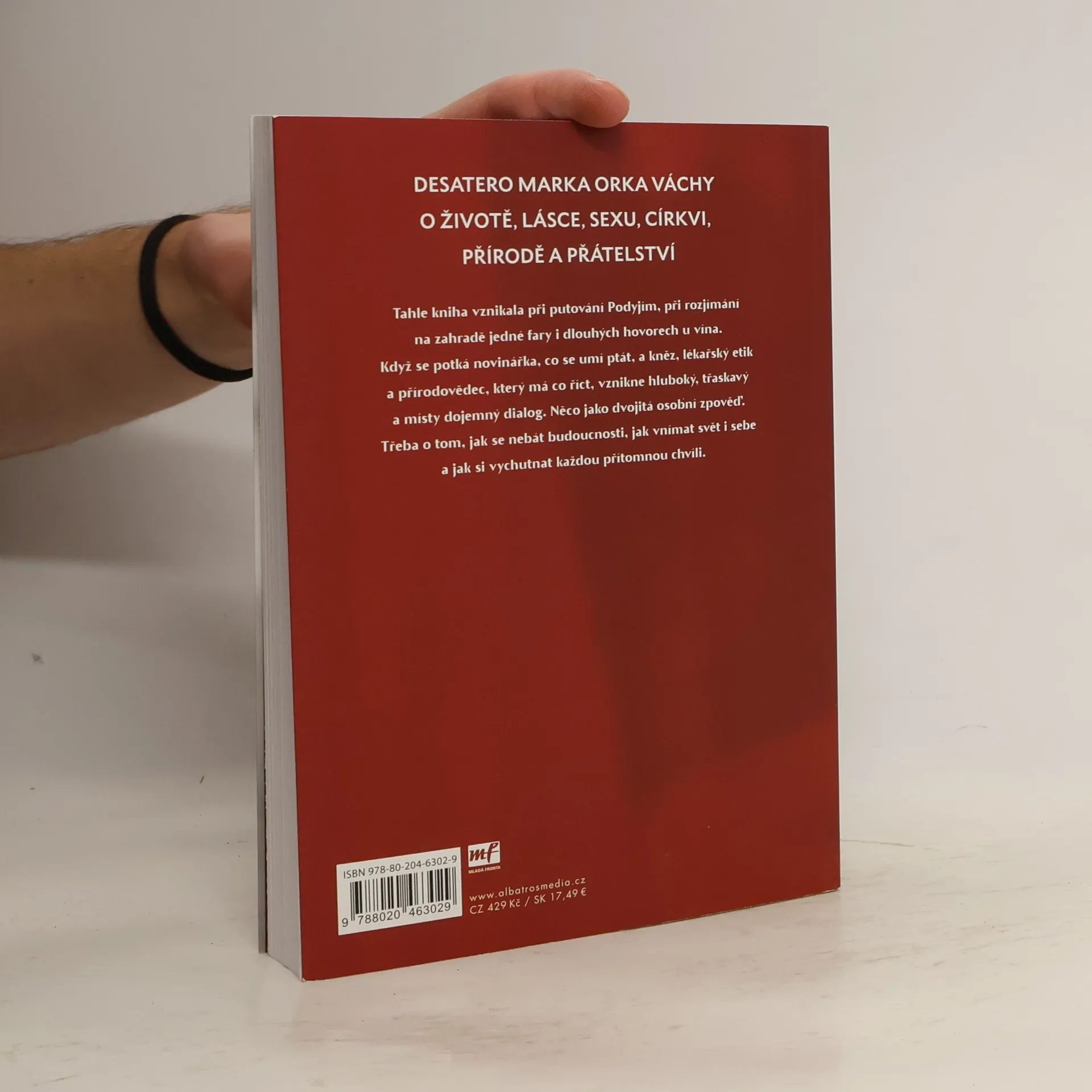 Desatero Marka Orko Váchy o životě, lásce, sexu, církvi, přírodě a přátelství Tahle kniha vznikala při putování Podyjím, při rozjímání na zahradě jedné fary i dlouhých hovorech u vína. Když se potká novinářka, co se umí ptát, a kněz, lékařský etik a přírodovědec, který má co říct, vznikne hluboký, třaskavý a místy dojemný dialog. Něco jako dvojitá osobní zpověď. Třeba o tom, jak se nebát budoucnosti, jak vnímat svět i sebe a jak si vychutnat každou přítomnou chvíli. Marek Orko Vácha a Renata Kalenská zvou čtenáře k empatickému a otevřenému knižnímu rozhovoru, volně inspirovanému biblickým desaterem.