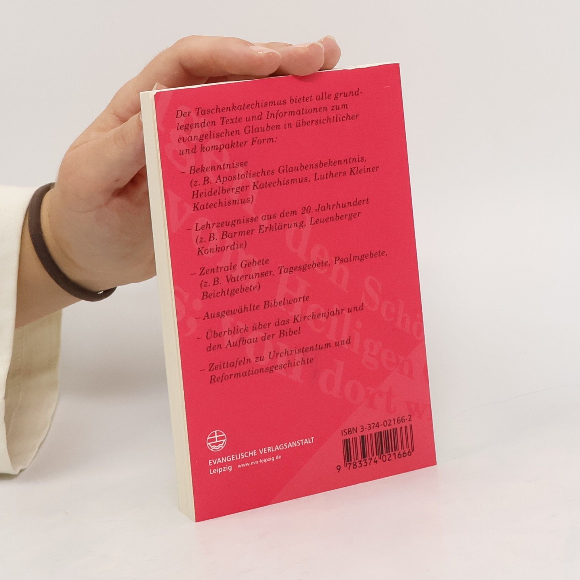 Der Taschenkatechismus erschien in der Evangelischen Verlagsanstalt erstmalig 1950 unter dem Titel „Unser Glaube“. In der nun vorliegenden völligen Neubearbeitung vereint er in bewährter und handlicher Form die wichtigsten Texte evangelischen Glaubens: Basistexte – angefangen vom Apostolischen Glaubensbekenntnis über Martin Luthers Kleinen Katechismus und den Heidelberger Katechismus bis hin zur Theologischen Erklärung von Barmen und der Leuenberger Konkordie. Damit kann er in allen evangelischen Kirchen eingesetzt werden. Neben alten Glaubenszeugnissen wie Psalmen und biblischen Sprüchen finden sich im Buch auch neue Gebete und Texte. Darüber hinaus enthält der Taschenkatechismus eine Übersicht über das Kirchenjahr, über den Aufbau der Bibel sowie reformationsgeschichtliche Grunddaten. Zudem benennt und erklärt er in knapper Form die Unterschiede zwischen den evangelischen Kirchen und der römisch-katholischen Kirche. Der Katechismus im handlichen Taschenformat ist ein gutes Werkzeug zur Vorbereitung auf die Konfirmation oder die Erwachsenentaufe und kann darüber hinaus von Pfarrern und Pfarrerinnen sowie Religionslehrern und Religionslehrerinnen vielfältig eingesetzt werden.