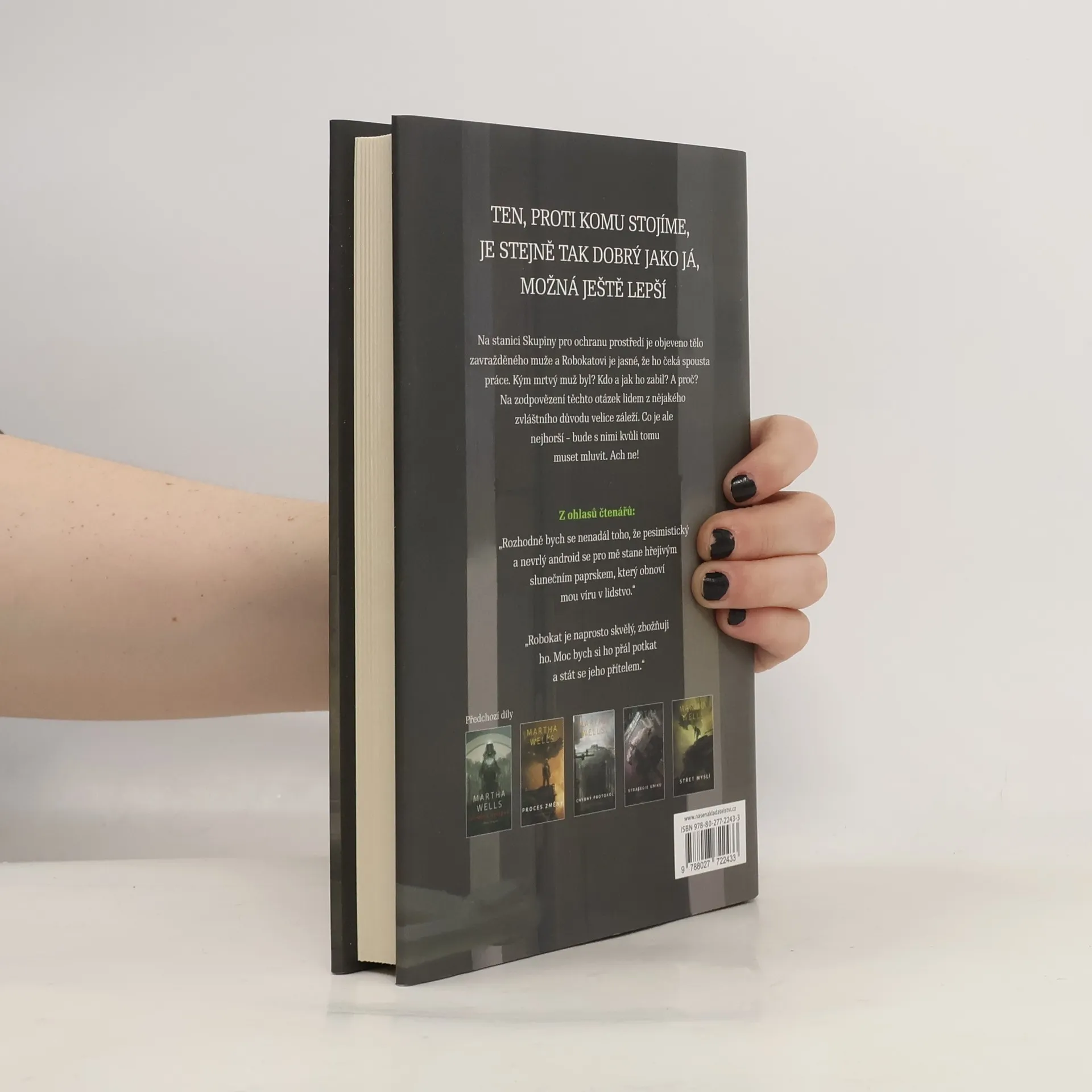 Věrným čtenářům brilantně napsané sci-fi série Z deníků Robokata není třeba představovat hlavní postavu humanoidního robota, který se při kontaktu s lidmi nedokáže ubránit sarkastickým poznámkám na adresu lidstva. Jenže ve svém novém dobrodružství zažije Robokat naprosto nečekané situace a bude se muset projevit tak, jak ho čtenáři doposud nepoznali. Když se na pokojné stanici v oblasti pod správou Skupiny pro ochranu prostředí nalezne tělo zavražděného muže, musí místní ochranka navzdory počáteční neochotě a nedůvěře přibrat Robokata do svého vyšetřovacího týmu a nechat ho, aby s inspektorkou Aylenovou dopadl vraha podle svých vlastních a leckdy nevybíravých metod. Martha Wells v této novele opět obhájila pověst skvělé vypravěčky a podobně jako v předchozích dílech, i zde vykreslila na pozadí napínavého příběhu, nyní dokonce s detektivní zápletkou, dilema spolupráce lidí a strojů, jež občas paradoxně dokážou uštědřit svým tvůrcům lekci z lidskosti, zodpovědnosti a přátelství.