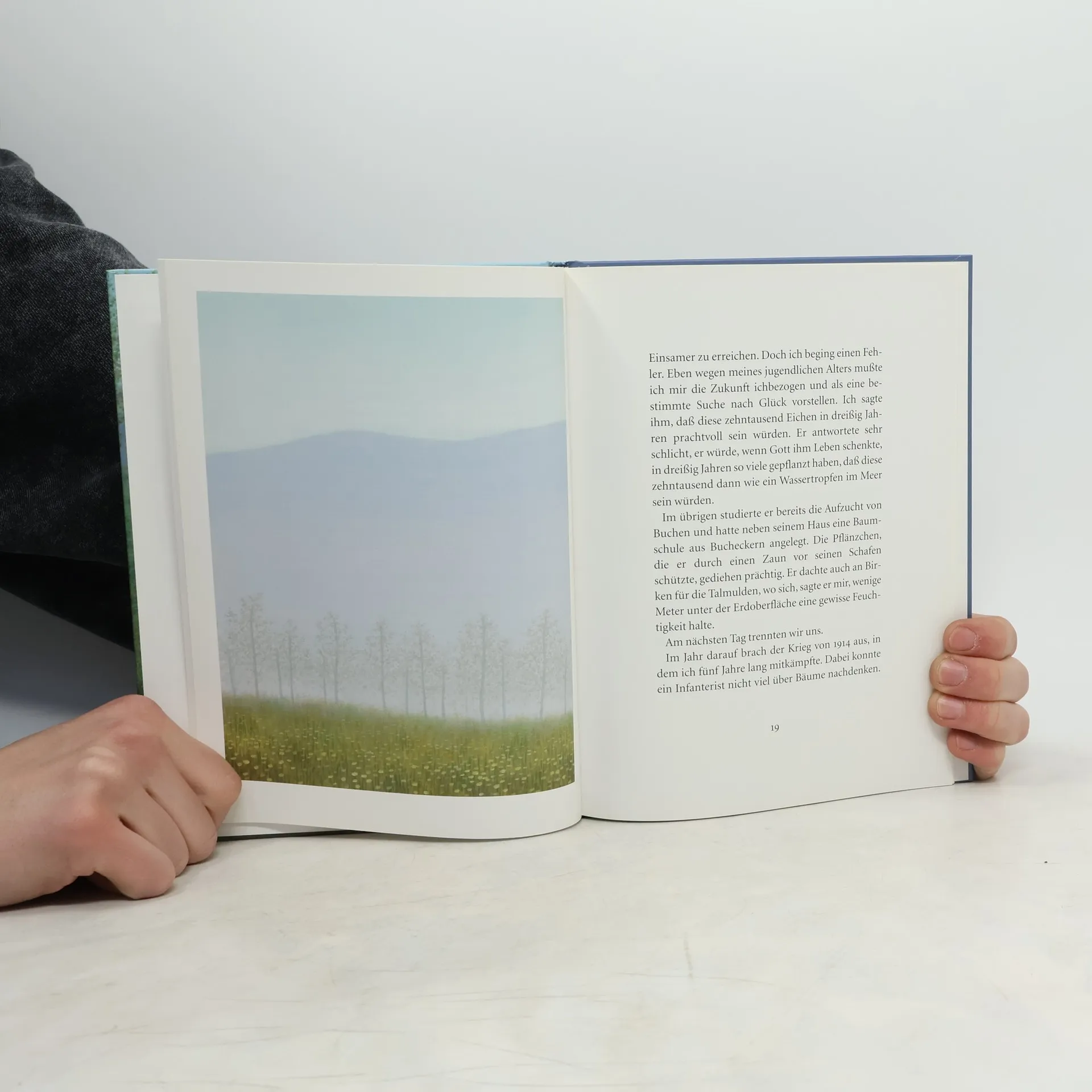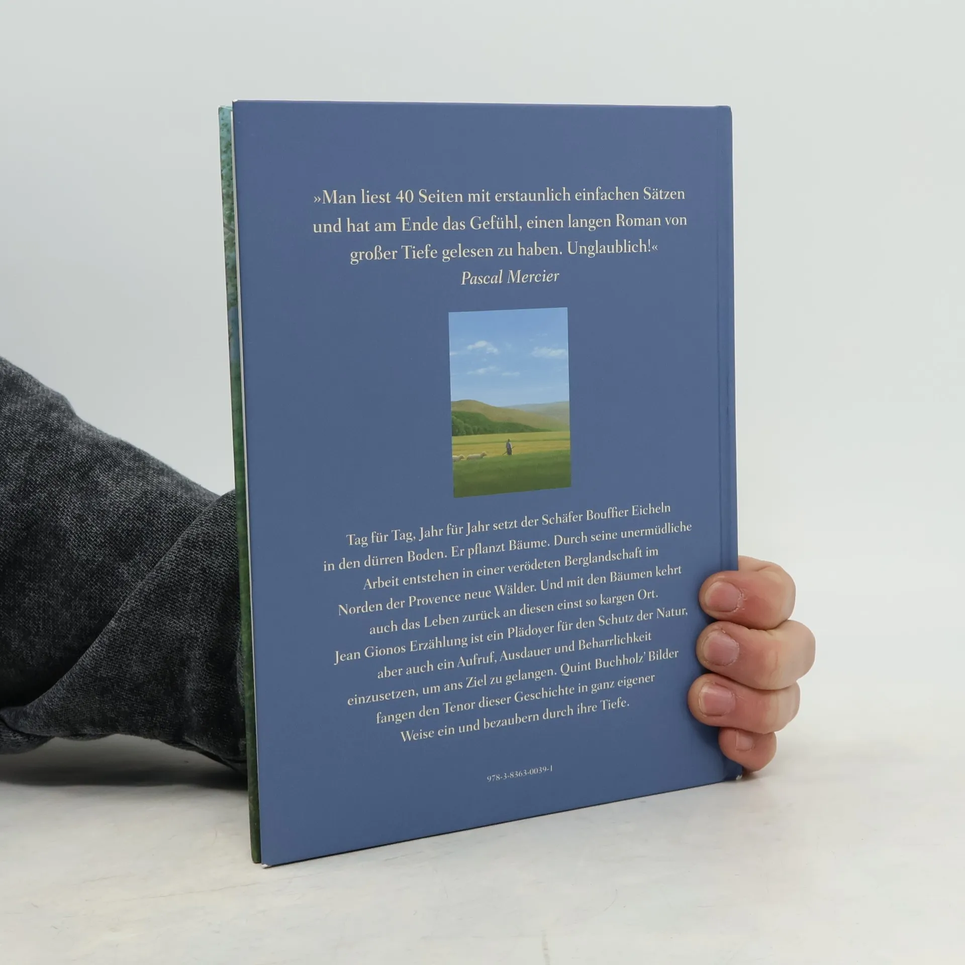 Ein neu illustrierter Klassiker der französischen Literatur erzählt von Elzéard Bouffier, einem Schäfer, der kurz vor dem Ersten Weltkrieg in der zerstörten Provence Bäume pflanzt. Mit Geduld und Willen schenkt er den Menschen Lebensfreude und verändert nachhaltig die Natur. Die Illustrationen von Quint Buchholz betonen die aktuelle Thematik.