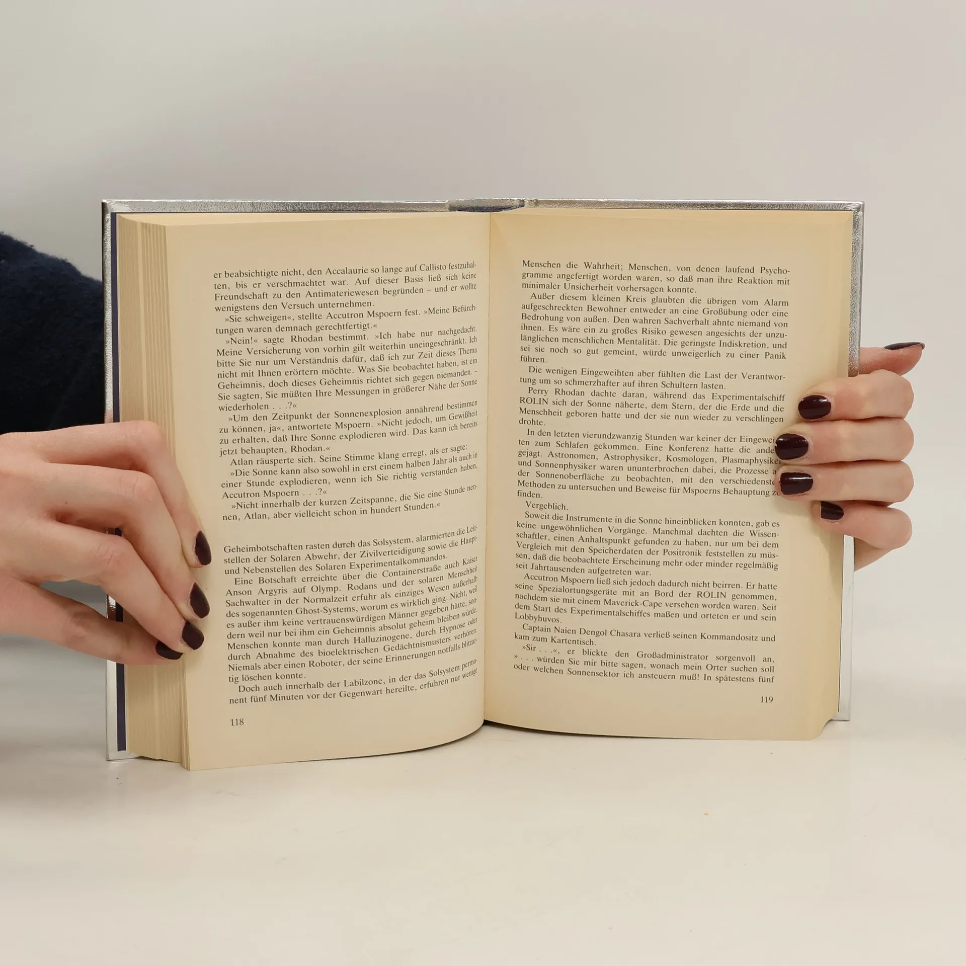 Enthaltene Original-Romane (Heftromane, #407, #412-413, #415-416 und #420-421):- "Das neue Element"- "Gefahr von Sol"- "Die Sonnenforscher"- "Freunde aus einem fremden Universum"- "Der Supermutant"- "Rätsel der Vergangenheit"- "Report eines Neandertalers"Durch Perry Rhodans genialen Schachzug ist die Menschheit einem verheerenden Bruderkrieg entgangen. Das Solsystem befindet sich weiterhin um fünf Minuten in der Zukunft, doch die Terraner sind von ihrem Versteck aus weiterhin in der Galaxis aktiv. Dabei stoßen sie wieder auf die gefährlichen Energieblasen der Accalauries, die aus einem Antimaterie-Universum kommen und die Milchstraße in Angst und Schrecken versetzen. Als es endlich zur Verständigung mit den Fremden kommt, macht einer von ihnen im Solsystem eine furchtbare Entdeckung. Die Sonne steht kurz davor, sich in eine alles Leben verschlingende Nova zu verwandeln. Schuld daran ist ein unangreifbarer Todessatellit, den Unbekannte vor 200.000 Jahren installierten. Die Tage der solaren Menschheit scheinen gezählt zu sein...