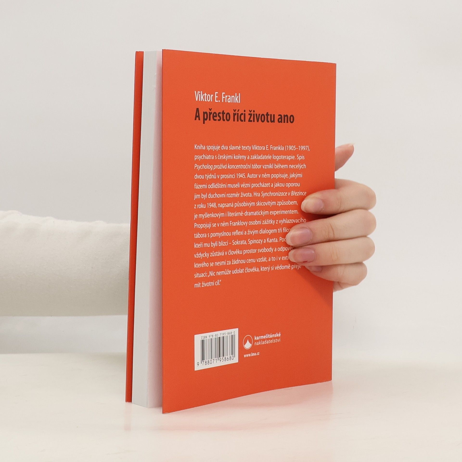 Kniha spojuje dva slavné texty Viktora E. Frankla (1905 - 1997), psychiatra s českými kořeny a zakladatele logoterapie. Spis Psycholog prožívá koncentrační tábor vznikl během necelých dvou týdnů v prosinci 1945. Autor v něm popisuje, jakými fázemi odlidštění museli vězni procházet a jakou oporou jim byl duchovní rozměr života. Hra Synchronizace v Březince z roku 1948, napsaná působivým skicovitým způsobem, je myšlenkovým i literárně-dramatickým experimentem. Propojují se v něm Franklovy osobní zážitky z vyhlazovacího tábora s pomyslnou reflexí a živým dialogem tří filozofů, kteří mu byli blízcí Sokrata, Spinozy a Kanta. Podle Frankla vždycky zůstává v člověku prostor svobody a odpovědnosti, kterého se nesmí za žádnou cenu vzdát, a to i v extrémní situaci: Nic nemůže udolat člověka, který si vědomě přeje mít životní cíl.