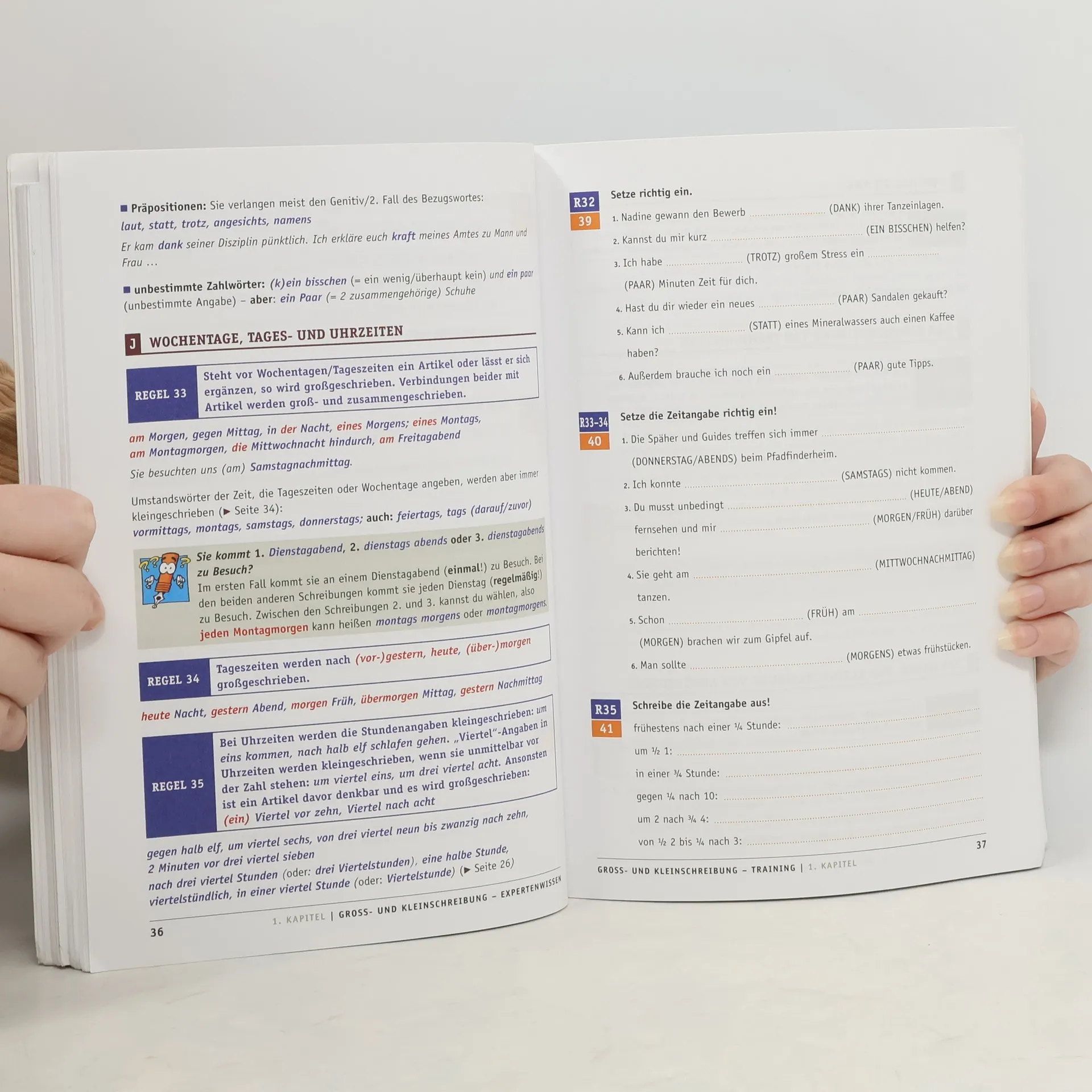Diese Lernhilfe bietet das Regelwerk der deutschen Rechtschreibung in kompakten Lerneinheiten nach dem Doppelseitenprinzip. Die Rechtschreibregeln und deren Erläuterungen auf der linken Buchseite werden durch methodisch-didaktisch abwechslungsreiche Übungen auf der rechten Buchseite ergänzt. Der Durchstarten-Rechtschreibtrainer eignet sich als Begleitwerk im Anfangsunterricht, als Nachschlagewerk für höhere Schulstufen und für Erwachsene. Drei Rechtschreibtests zu Beginn ysieren die individuellen Rechtschreibschwächen, sod zielgerichtet geübt werden kann. Das Entdecken von Rechtschreibfehlern in Texten wird trainiert durch Übungen zum Korrekturlesen. Das beigelegte Lösungsheft dient der Selbstkontrolle. Nach österreichischem Lehrplan! Aus dem - Tipps zum Rechtschreibtraining - Tests zur Selbsteinschätzung - Groß- und Kleinschreibung - s-Schreibung und d/das - Komma und andere Satzzeichen - Verdoppelung von Konsonanten - Schreibung langer Vokale - Gleiche Laute - unterschiedliche Schreibung - Fremdwörter - Getrennt- und Zusammenschreibung - Worttrennung
