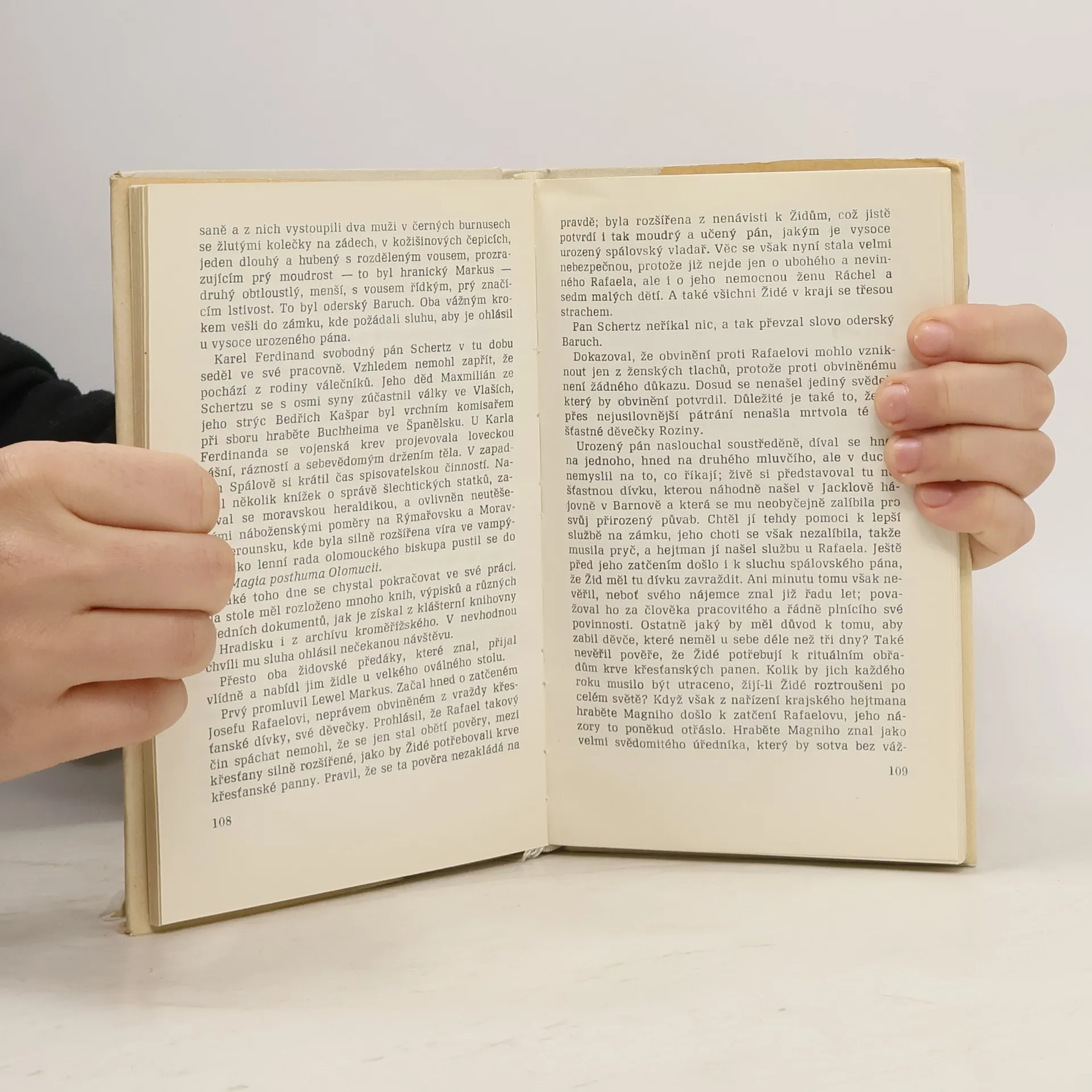 Vesnice Spálov na pomezí Moravy a Slezska byla v r. 1687 jedním z mnoha zastavení Roziny Kaiserové na její strastiplné zimní pouti z rakouského Mistelbachu do moravského Krnova za vojákem od Schärffenbergova regimentu, za vidinou nového, šťastnějšího života. Záhadné zmizení krásného mladého děvčete ze služby u místního vinopalníka Rafaela vyvolalo v kraji fantastické pověsti o rituální vraždě a scházelo jen málo, aby všechno neskončilo tragickým justičním omylem. Příběh i postavy jsou vzaty ze skutečné události, jak ji zaznamenaly dobové soudní protokoly. Zbeletrizovaná rekonstrukce morálně profiluje soudní byrokracii 17. století a v jednání i rozhodování jejích dvou představitelů – hejtmana Magniho a rychtáře Zirkendorffera – nachází prestižní nebo korupční motivy. Celá ta hrůzostrašná historie ze starých časů je přitom vylehčena humorným autorovým nadhledem.