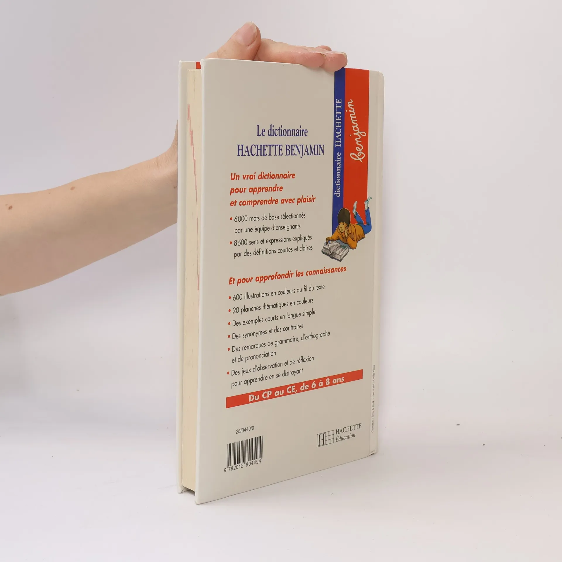 6000 mots de base sélectionnés par une équipe d'enseignants , 8500 sens et expressions expliqués par des définitions courtes et claires Et pour approfondir les connaissances * 600 illustrations en couleurs au fil du texte. * 20 planches thématiques en couleurs. * Des exemples courts en langue simple. * Des synonymes et des contraires. * Des remarques de grammaire, d'orthographe et de prononciation. * Des ieux d'observation et de réflexion pour apprendre en se distrayant.