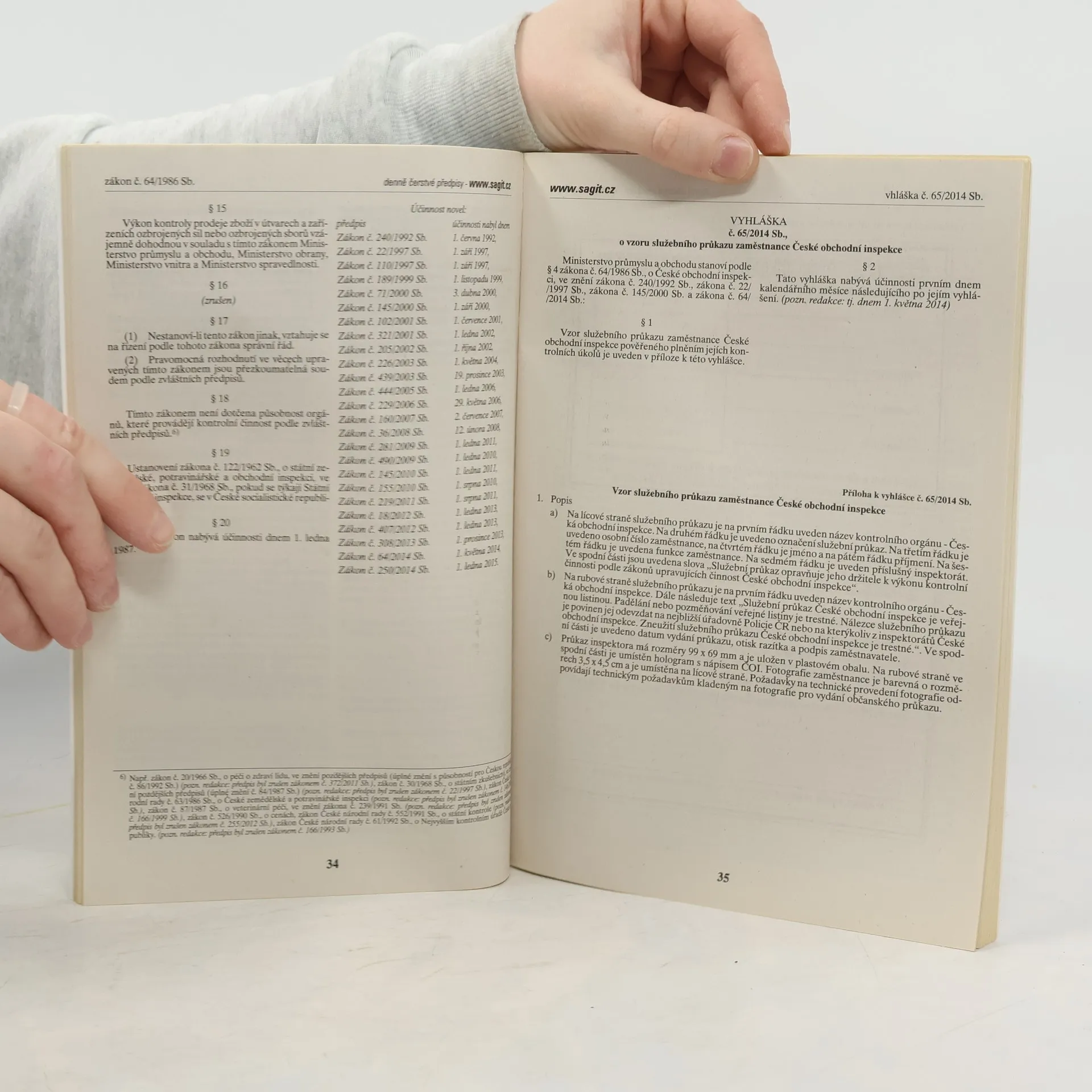 Soubor 7 zákonů a dalších právních předpisů v aktuálním znění – novelizovaný zákon o ochraně spotřebitele a zákon o České obchodní inspekci, zásadní novela zákona o potravinách a tabákových výrobcích. Dále zákon o technických požadavcích na výrobky, o obecné bezpečnosti výrobků, 9 vyhlášek a sdělení.