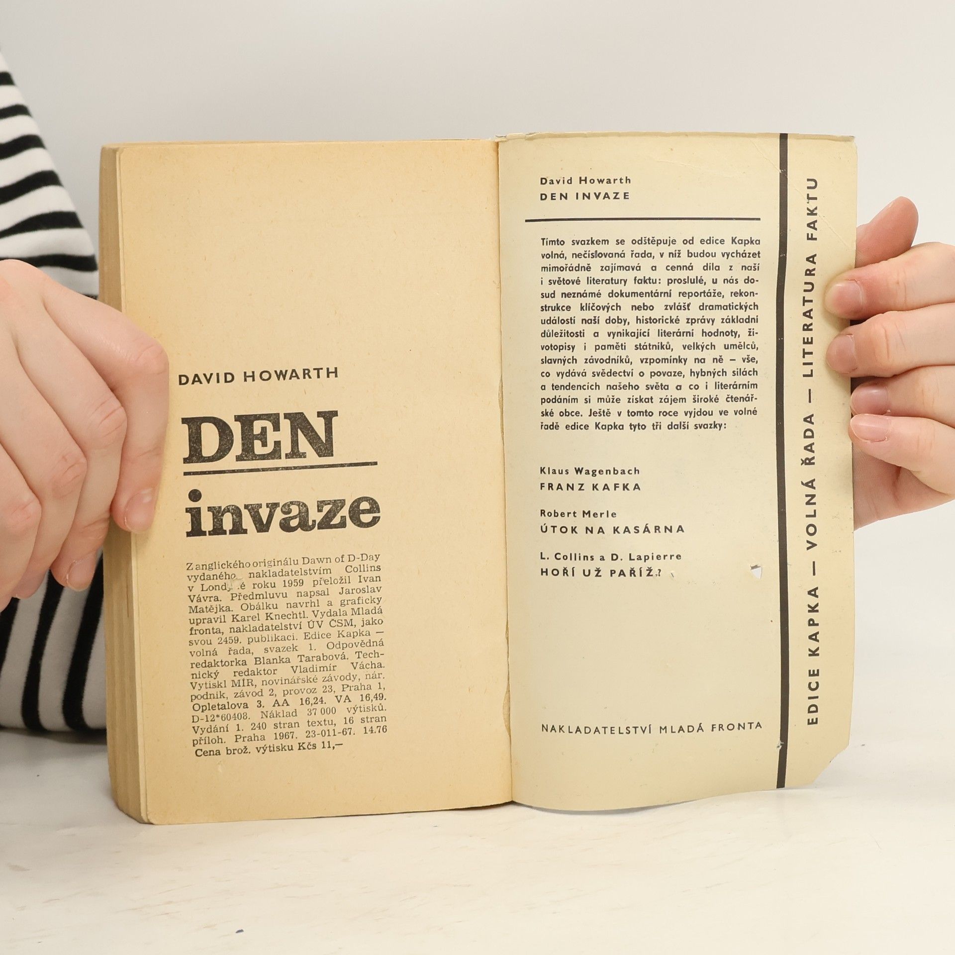 Invazi anglo-amerických vojsk do Normandie považoval sám Churchill za nejsložitější a nejobtížnější operaci v dějinách. Autor zachycuje v knize její průběh v zážitcích mužů, které vybral v počtu asi třiceti tak, aby jejich osudy poskytly o ní pokud možno nejúplnější představu. Z líčení je patrno, že v přípravách invaze hrála nejdůležitější úlohu britská diplomacie a především Winston Churchill.