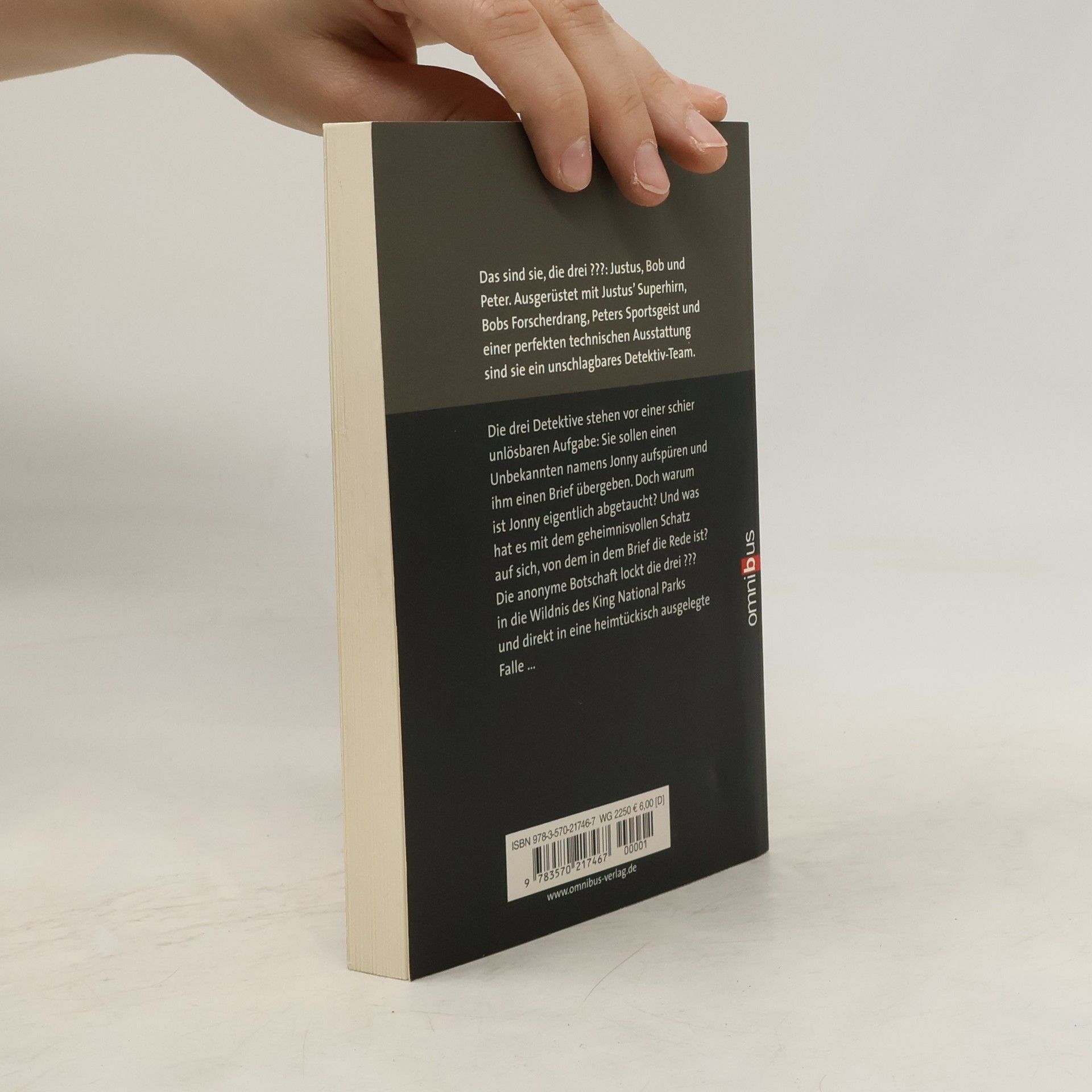 Frischer Wind für die Kult-Krimiserie Die drei Detektive stehen vor einer schier unlösbaren Aufgabe: Sie sollen einen Unbekannten namens Jonny aufspüren und ihm einen Brief übergeben. Doch warum ist Jonny eigentlich abgetaucht? Und was hat es mit dem geheimnisvollen Schatz auf sich, von dem in dem Brief die Rede ist? Die anonyme Botschaft lockt die drei ??? in die Wildnis des Kings National Parks und direkt in eine heimtückisch ausgelegte Falle … Ein seltsamer Auftrag erreicht die drei ??? am Strand von Rocky Beach: Ein kleiner Junge bringt ihnen einen Brief, den sie auf keinen Fall selbst öffnen, sondern einem gewissen Johnny überbringen sollen. Doch die Übergabe scheitert - Johnny scheint untergetaucht zu sein. Als sie den Brief dann doch öffnen, ist das Interesse von Justus, Peter und Bob geweckt. Es gilt einen geheimnisvollen Schatz im Kings National Park zu bergen, den der Absender selbst dort versteckt hat. Mehrere Beteiligte scheinen hinter dem Schatz her zu sein, doch über Inhalt und Umstände der Schatzsuche spricht der Absender nur in Rätseln. Für die drei ??? ist klar: Sie packen ihr Zelt und brechen auf zum Nationalpark. Nach und nach kommt heraus, dass es sich bei dem Schatz um das Drehbuch für die letzte Folge einer äußerst erfolgreichen Fernsehserie handelt. Wer zuerst das Manuskript zum Notar bringt, bekommt die Vermarktungsrechte. Doch am Ende machen weder die niederträchtige Produzentin Peg MacWeiden noch der missgünstige Autorenkollege Marc Walker das Rennen, sondern die drei ??? verhelfen Rangerin Monica dazu, einer Freundin des Serienautors und Briefabsenders Glen, die mit dem Geld den Nationalpark unterstützen will.