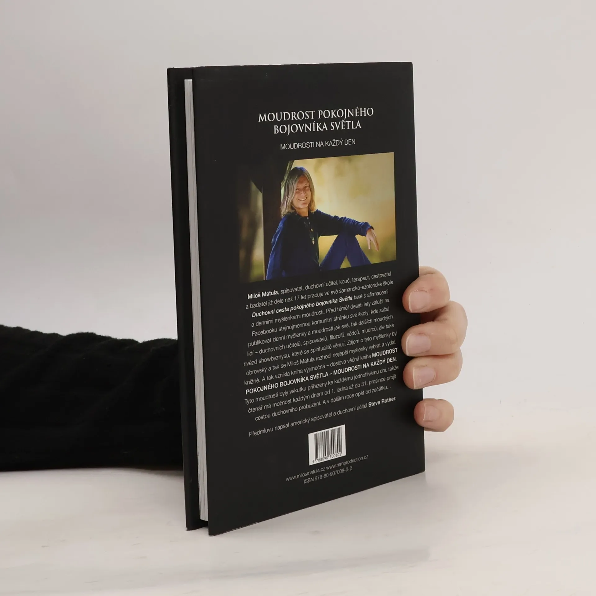Miloš Matula, spisovatel, duchovní učitel, kouč, terapeut, cestovatel a badatel již déle než 17 let pracuje ve své šamansko-ezoterické škole Duchovní cesta pokojného bojovníka Světla také s afirmacemi a denními myšlenkami moudrosti. Před téměř deseti lety založil na Facebooku stejnojmennou komunitní stránku své školy, kde začal publikovat denní myšlenky a moudrosti jak své, tak dalších moudrých lidí – duchovních učitelů, spisovatelů, filozofů, vědců, mudrců, ale také hvězd showbyznysu, které se spiritualitě věnují. Zájem o tyto myšlenky byl obrovský a tak se Miloš Matula rozhodl nejlepší myšlenky vybrat a vydat knižně. A tak vznikla kniha výjimečná – doslova věčná kniha MOUDROST POKOJNÉHO BOJOVNÍKA SVĚTLA – moudrosti na každý den. Tyto moudrosti byly vskutku přiřazeny ke každému jednotlivému dni, takže čtenář má možnost každým dnem od 1. ledna až do 31. prosince projít cestou duchovního probuzení. A v dalším roce opět od začátku... Předmluvu napsal americký spisovatel a duchovní učitel Steve Rother.