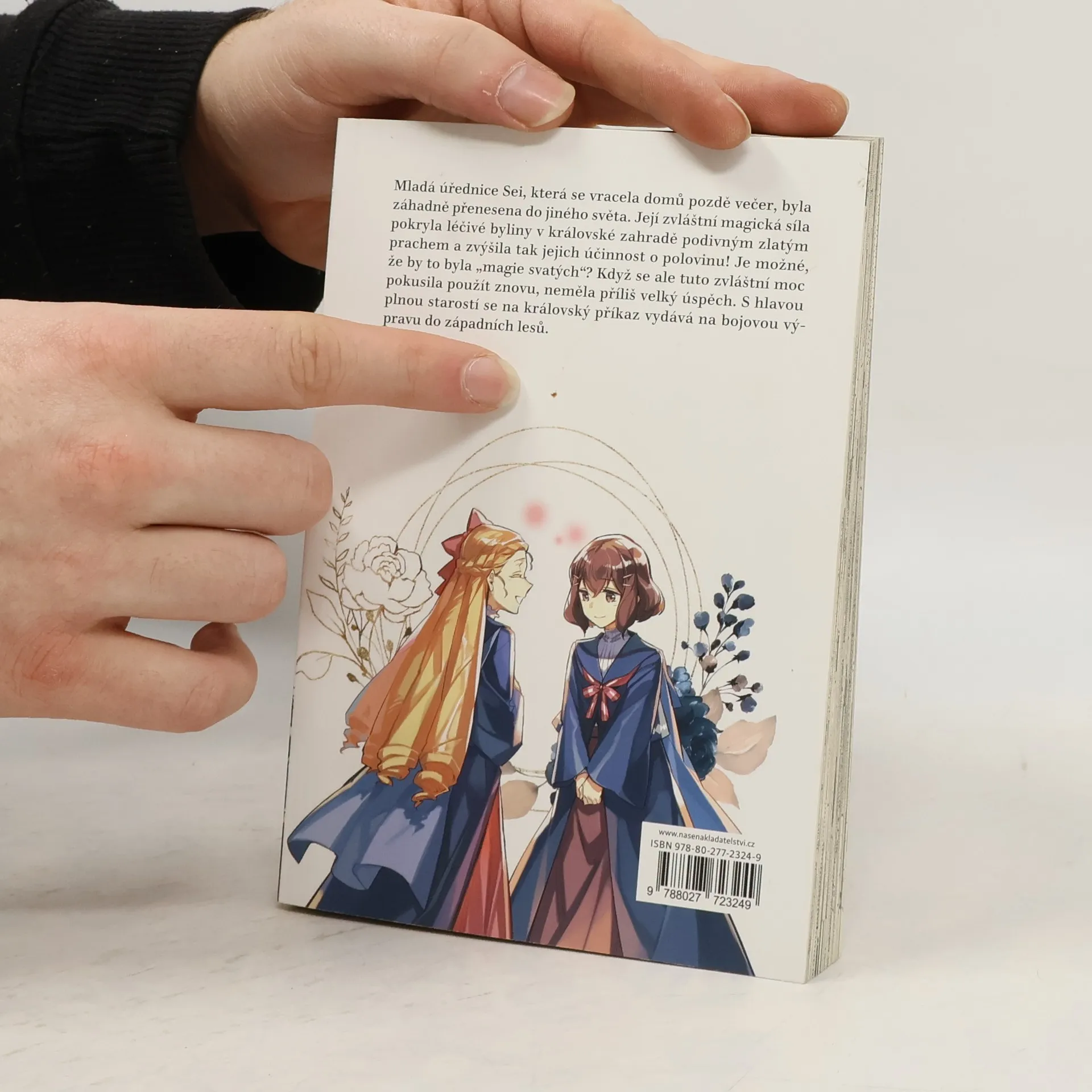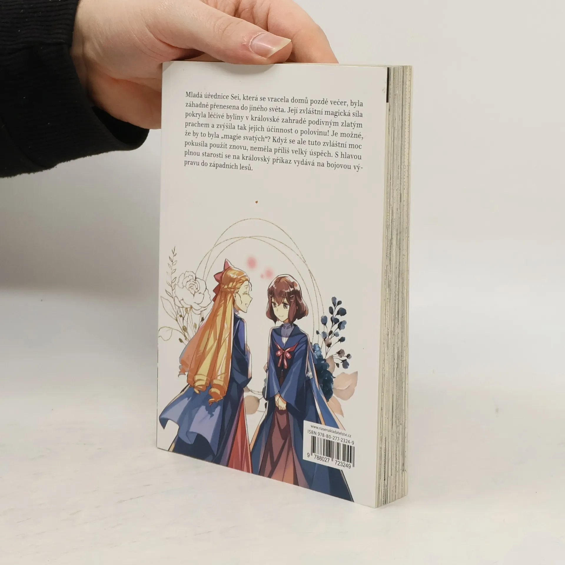 Mladá úřednice Sei, která se vracela domů pozdě večer, byla záhadně přenesena do jiného světa. Její zvláštní magická síla pokryla léčivé byliny v královské zahradě podivným zlatým prachem a zvýšila tak jejich účinnost o polovinu! Je možné, že by to byla "magie svatých"? Když se ale tuto zvláštní moc pokusí použít znovu, nemá příliš velký úspěch. S hlavou plnou starostí se na královský příkaz vydává na výpravu do západního lesa.
