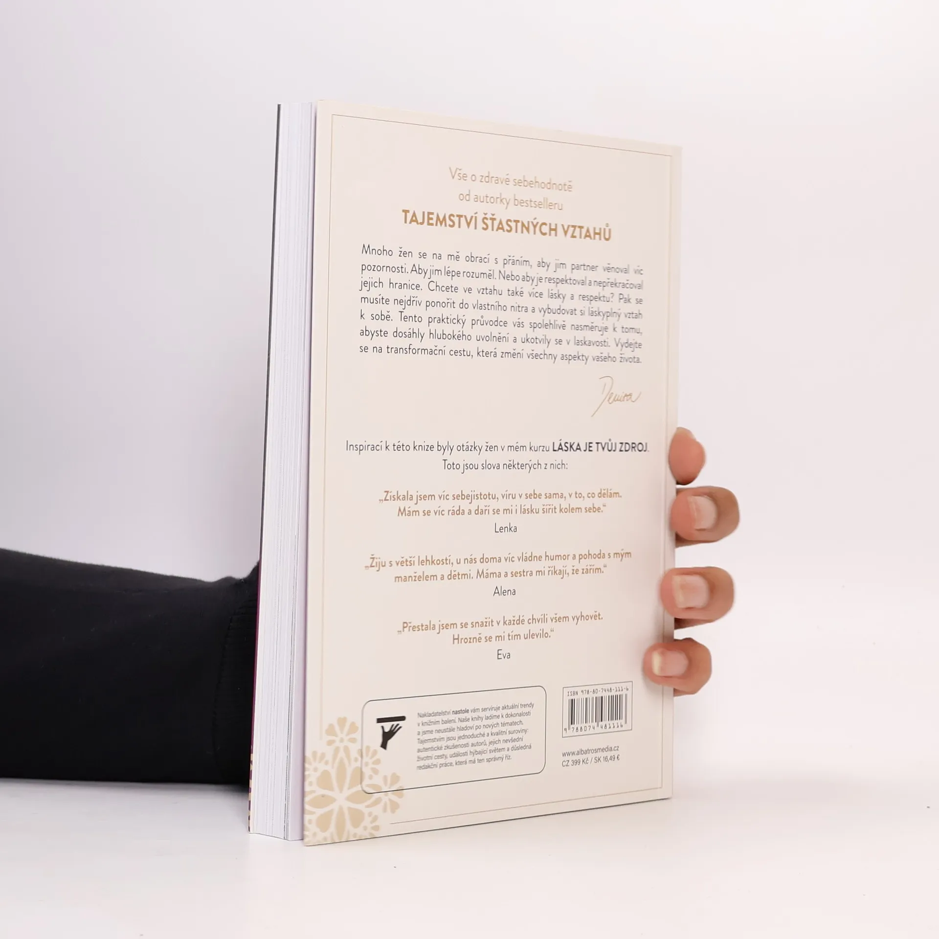 Vše o zdravé sebehodnotě. Průvodce od autorky bestselleru Tajemství šťastných vztahů. Mnoho žen se na mě obrací s přáním, aby jim partner věnoval více pozornosti. Aby jim lépe rozuměl. Nebo aby je respektoval a nepřekračoval jejich hranice. Chcete ve vztahu také více lásky a respektu? Pak se musíte nejdřív ponořit do vlastního nitra a vybudovat si láskyplný vztah k sobě. Tento praktický průvodce vás spolehlivě nasměruje k tomu, abyste dosáhly hlubokého uvolnění a ukotvily se v laskavosti. Vydejte se na transformační cestu, která změní všechny aspekty vašeho života.