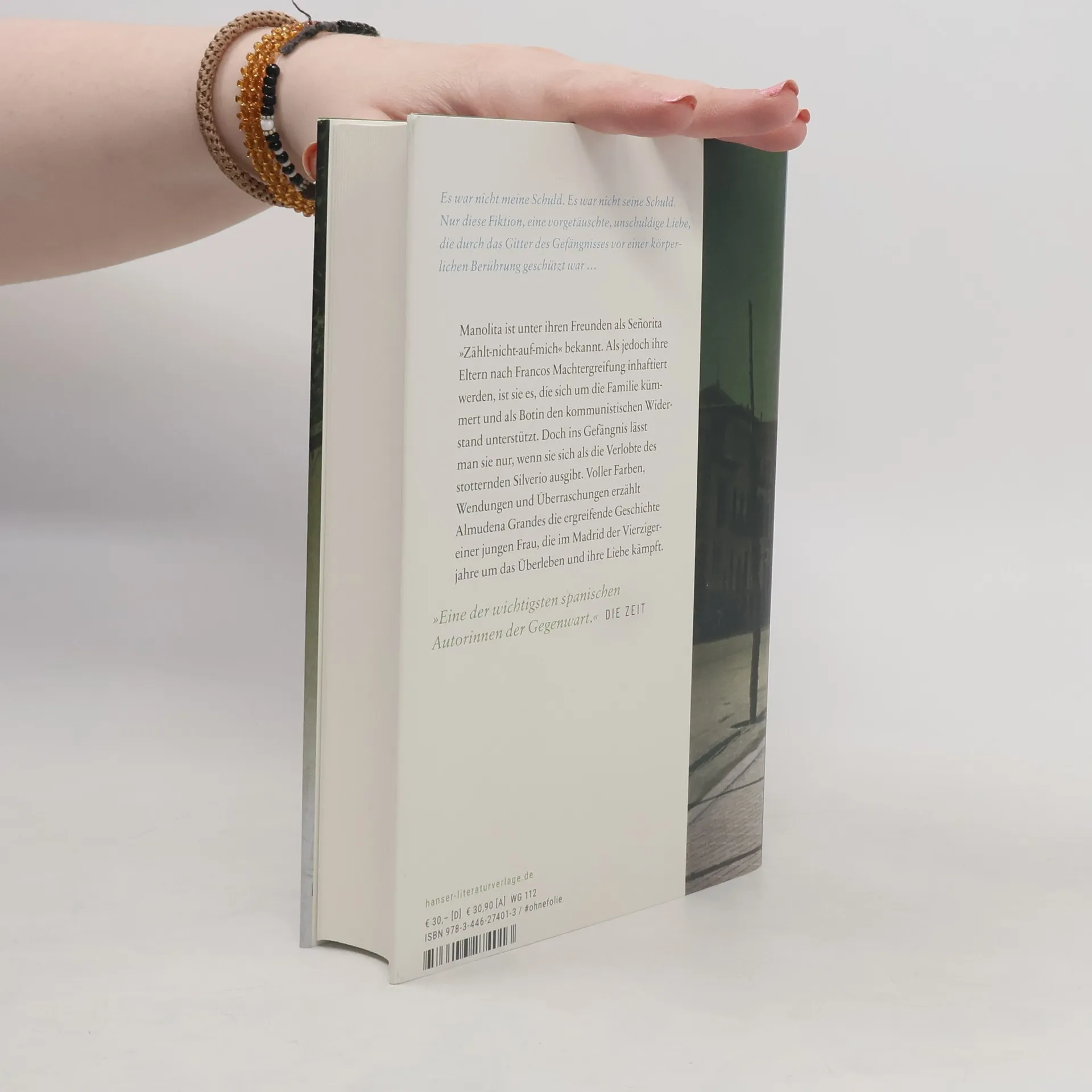 Almudena Grandes´ Vermächtnis – ein großer Roman über Solidarität und Liebe in finsteren Zeiten Manolitas einziger Vorsatz ist es, „nie den Fehler zu begehen, einen schönen Mann zu heiraten“. Sie ist bekannt als Señorita „Zählt-nicht-auf-mich“, doch als ihre Eltern nach Francos Machtergreifung im Gefängnis landen, muss sie sich um die Familie kümmern. Obwohl sie mit dem kommunistischen Widerstand nichts zu tun haben will, wird sie heimlich zur Botin für die Oppositionellen. Um Informationen ins Gefängnis zu schmuggeln, gibt sie vor, mit dem schüchternen und stotternden Silverio liiert zu sein. Ist dieser politische Häftling wirklich der Mann, den sie dreimal heiraten wird? Ein Roman voller Farben, Wendungen und Überraschungen. Das meisterhafte Vermächtnis der großen spanischen Autorin Almudena Grandes.