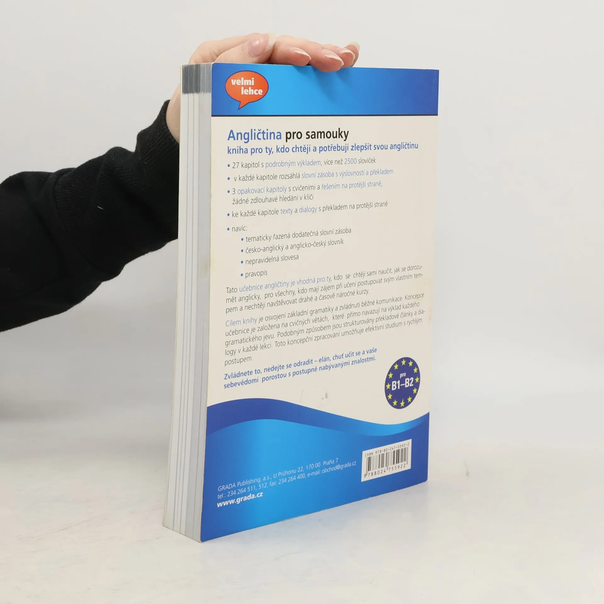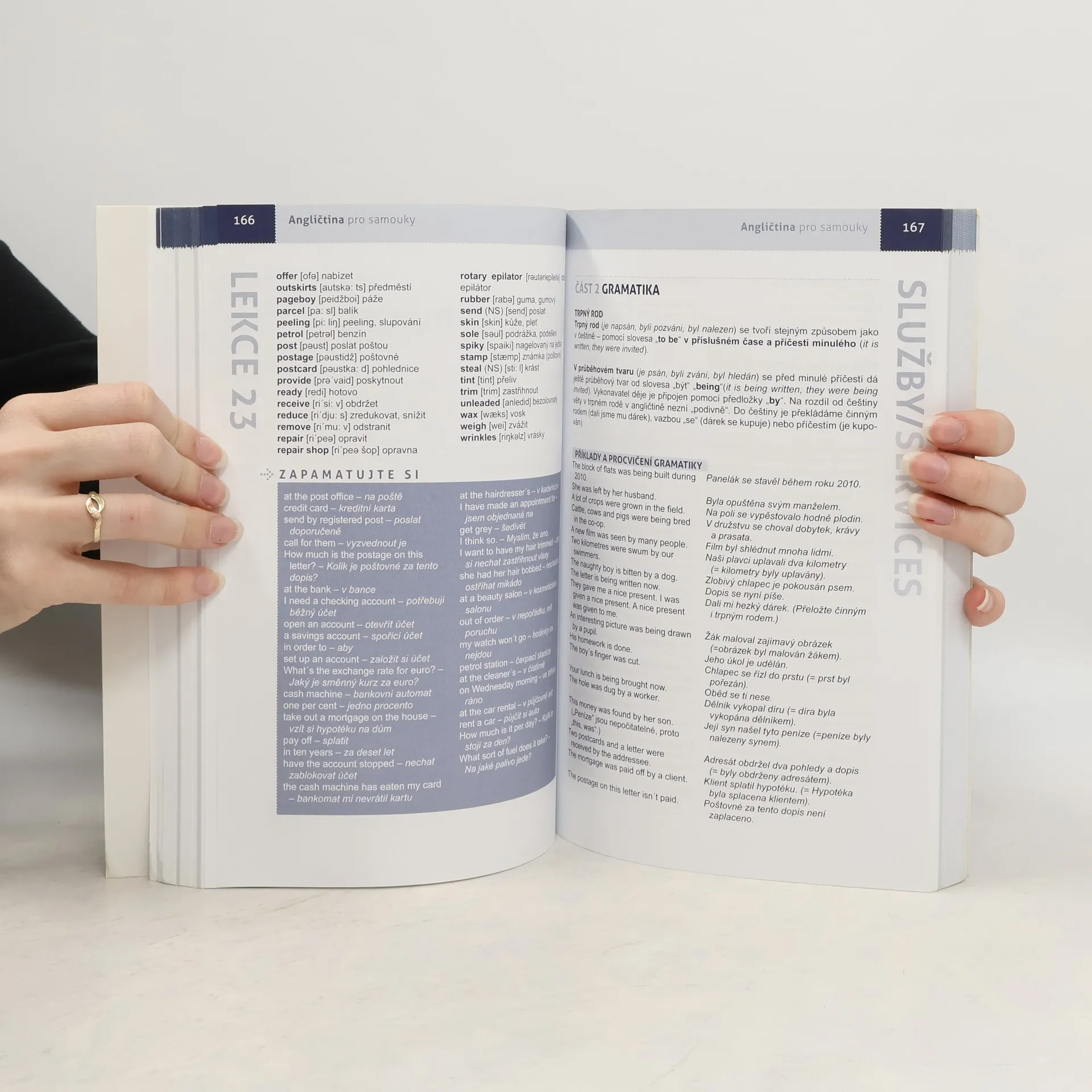 Tato učebnice angličtiny (úroveň B1 – B2) je vhodná pro zájemce, kteří mají potřebu se samostatně vyjadřovat a dorozumět ve světovém jazyce. Hodlají postupovat svým vlastním tempem a nechtějí navštěvovat drahé a časově náročné kurzy. Výhody knihy: zrcadlová podoba všech textů, cvičení a konverzačních aktivit, slovní zásoba s výslovností a českým překladem, žádné zdlouhavé vyhledávání v klíči, řešení okamžite po ruce na vedlejší stránce, efektivní učení zleva doprava a zprava doleva.