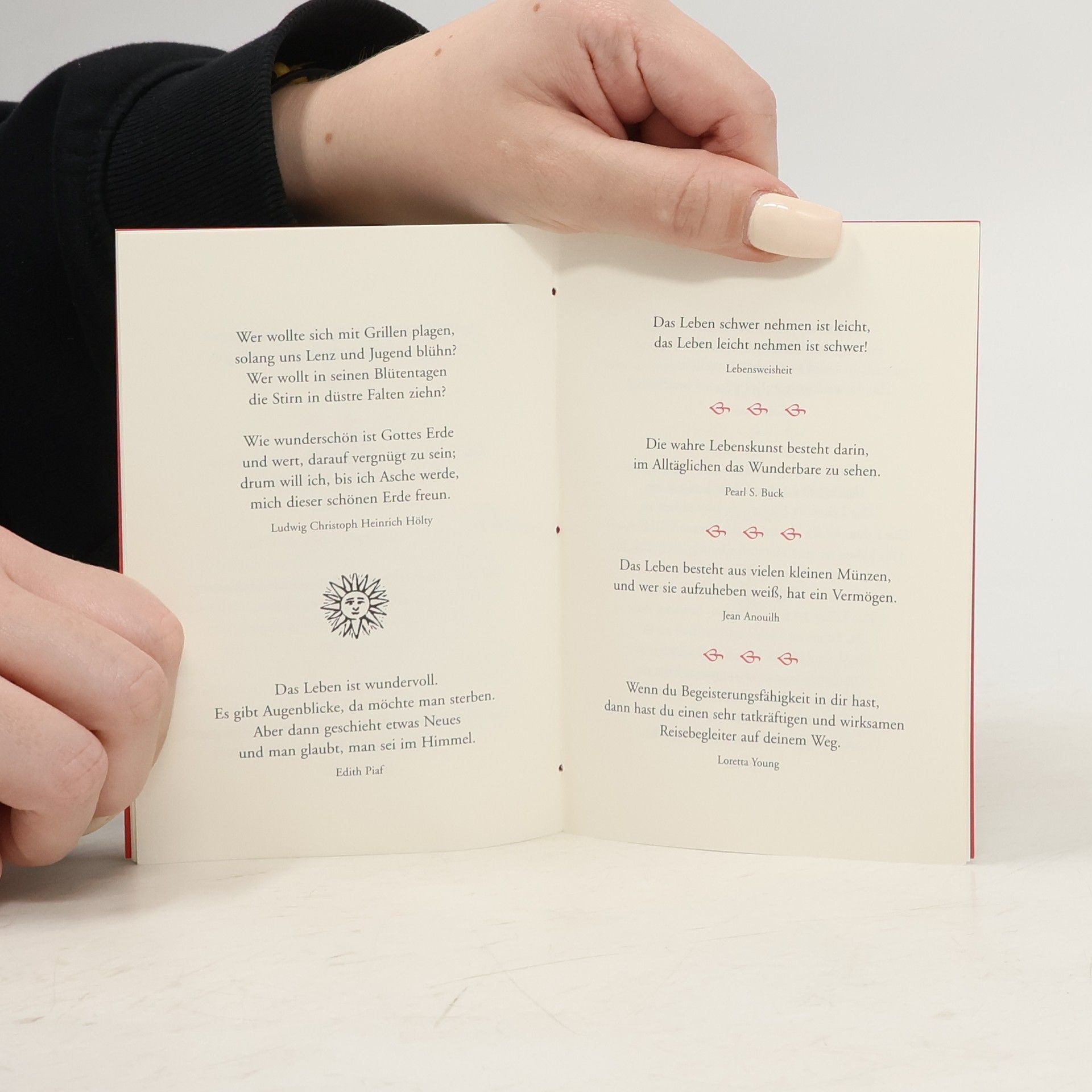 Der echte rote Faden ist das Markenzeichen dieser ausgefallenen Geschenkbuchreihe. Mit geistreichen Aphorismen und Gedichten, gepflegtem Design und edlem Papier ist das von Hand gebundene Buch zu allen