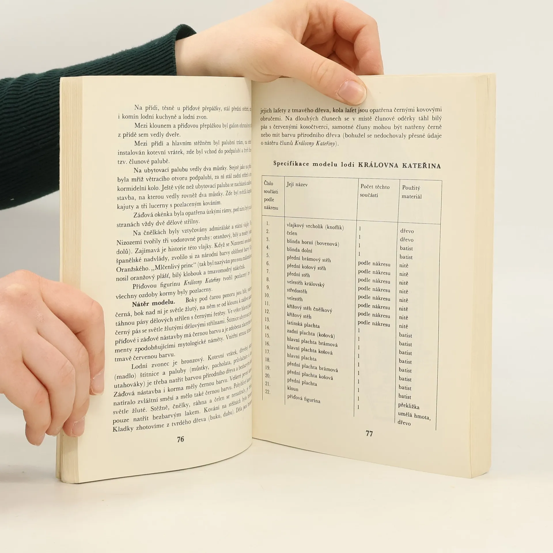 Publikace je určena mladým zájemcům o stavbu lodí. První část knihy je stručným přehledem o dějinách mořeplavby a lodního stavitelství. Druhá část je věnována třinácti lodím z různých období dějin a třetí oddíl je vlastně souborem popisů postupu zhotovení jednotlivých součástílodních modelů. Důležitou pomůckou je slovníček odborných výrazů.