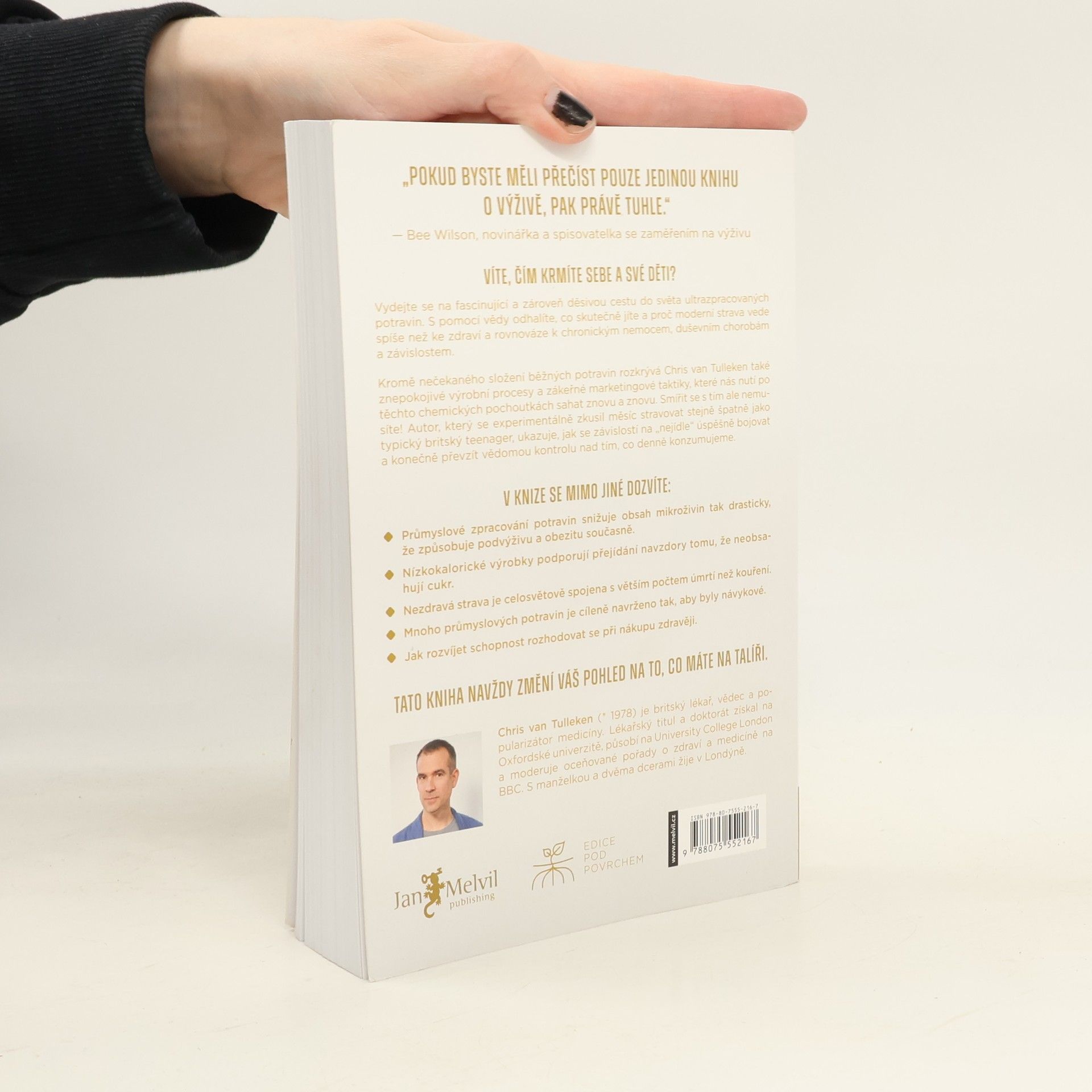 Víte, čím krmíte sebe a své děti? Vydejte se na fascinující a zároveň děsivou cestu do světa ultrazpracovaných potravin. S pomocí vědy odhalíte, co skutečně jíte a proč moderní strava vede spíše než ke zdraví a rovnováze k chronickým nemocem, duševním chorobám a závislostem. Kromě nečekaného složení běžných potravin rozkrývá Chris van Tulleken také znepokojivé výrobní procesy a zákeřné marketingové taktiky, které nás nutí po těchto chemických pochoutkách sahat znovu a znovu. Smířit se s tím ale nemusíte! Autor, který se experimentálně zkusil měsíc stravovat stejně špatně jako typický britský teenager, ukazuje, jak se závislostí na „nejídle“ úspěšně bojovat a konečně převzít vědomou kontrolu nad tím, co denně konzumujeme.