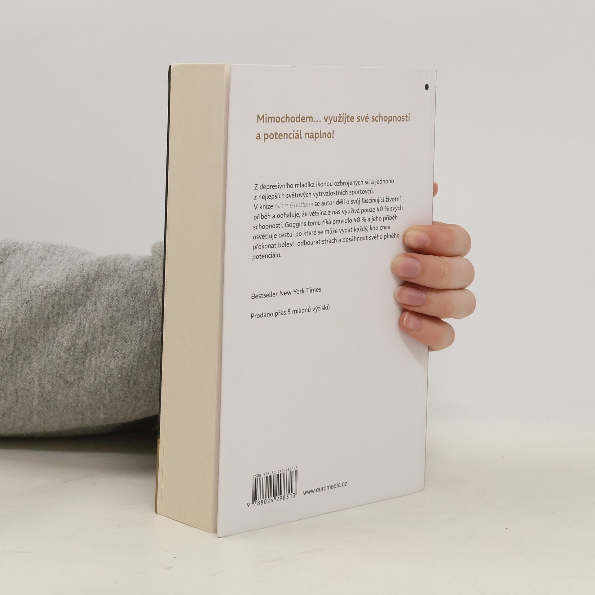 Dětství Davida Gogginse bylo noční můrou - chudoba, předsudky a fyzické týrání ho velmi poznamenaly. Díky sebekázni, psychické odolnosti a tvrdé práci se však Goggins proměnil z depresivního mladíka s nadváhou v ikonu amerických ozbrojených sil a jednoho z nejlepších světových vytrvalostních sportovců. Jako jediný muž v historii absolvoval elitní výcvik příslušníka Navy SEAL, armádního rangera a taktického leteckého dispečera, dále vytvořil rekordy v mnoha vytrvalostních závodech a časopis Outside ho označil za nejzdatnějšího muže v Americe. V knize Nic mě nezlomí se dělí o svůj fascinující životní příběh a odhaluje, že většina z nás využívá pouze 40 % svých schopností. Goggins tomu říká pravidlo 40 % a jeho příběh osvětluje cestu, po které se může vydat každý, kdo chce překonat bolest, odbourat strach a dosáhnout svého plného potenciálu. Bestseller New York Times. Prodáno přes 5 milionů výtisků