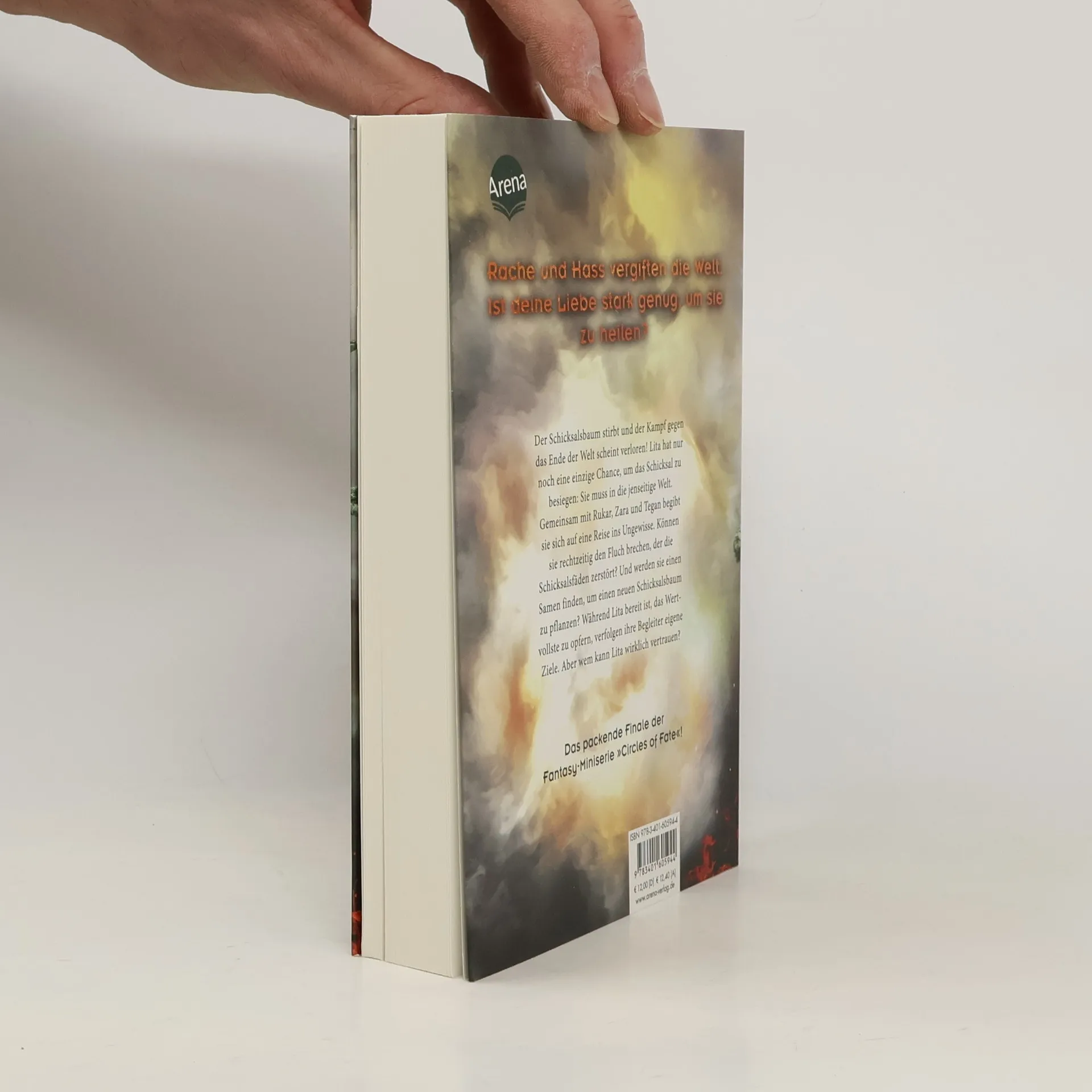 Dem Schicksal kann keiner entkommen. Doch was, wenn du erst sterben musst, um deines zu erfüllen? Die Schicksalsfäden der Menschen zerfallen zu Asche und in den Straßen Londons bleiben nur Schatten zurück. Der Kampf gegen das Ende der Welt scheint verloren! Lita hat nur noch eine einzige Chance, um das Schicksal zu besiegen: Sie muss in die jenseitige Welt, um zusammen mit Zara, Rukar und Tegan den Fluch zu brechen, der die Schicksalsfäden befallen hat. Und werden sie den Samen finden, um einen neuen Schicksalsbaum zu pflanzen? Während Lita bereit ist, das Wertvollste für das Leben ihrer Lieben zu opfern, verfolgen ihre Begleiter eigene Ziele. Wem kann Lita wirklich vertrauen? Bildgewaltiges Setting, epische Welt, atemloser Suchtstoff für alle Fantasy- und Serienliebhaber *innen ab 14 Jahren. Genial geplottet mit rasanten Spannungskurven, meisterhaft erzählt von der preisgekrönten Autorin Marion Meister ! Finde mehr heraus über die Schicksalsweberinnen : Spannende Aktionen und Infos bei Marion Meister unter instagram. com/marionmeister. autorin und beim Arena Verlag unter instagram. com/arena_verlag! Tauch ein in die vierbändige Miniserie „Circles of Fate”: Band 1: Schicksalsfluch Band 2: Schicksalssturm Band 3: Schicksalskampf Band 4: Schicksalserwachen