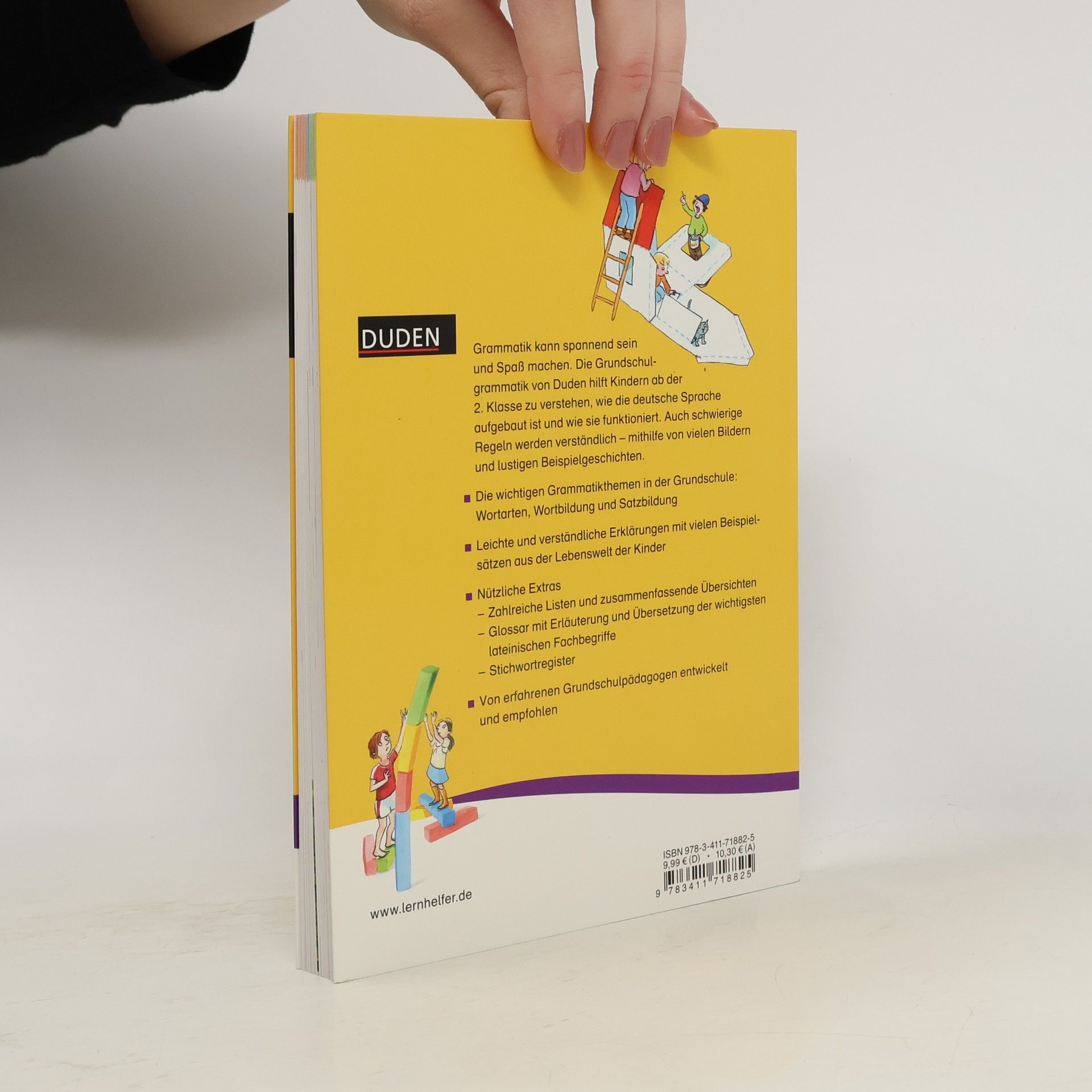 Mit diesem Band wird Grammatik zum Erlebnis – dank kindgerechten, leicht verständlichen Erklärungen und lustigen, hintergründigen Illustrationen. Grundschülern ab Klasse 2 wird hier vermittelt, wie die deutsche Sprache aufgebaut ist und wie sie funktioniert. Wichtige Grammatikthemen wie Wortarten, Wortbildung und Satzbau werden zuverlässig dargestellt und mit vielen Beispielsätzen aus der Lebenswelt der Kinder veranschaulicht. Umfasst den Unterrichtsstoff der Grundschule und ist für jedes Bundesland geeignet. Von erfahrenen Grundschulpädagoginnen entwickelt und empfohlen.