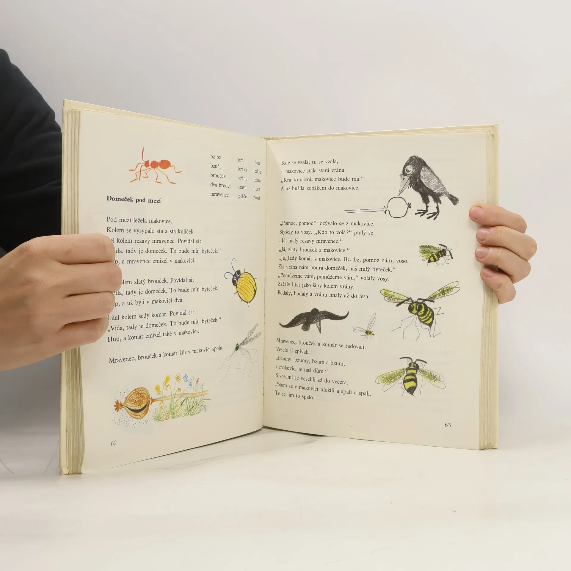 Učebnice obsahuje slabiky a slova pro nácvik uvědomělého čtení, dětské básně, říkadla a krátké příběhy s častou frekvencí přímé řeči. Slabikář byl oceněn Zlatou stuhou 1993 a téhož roku získal i Cenu Comeniana.