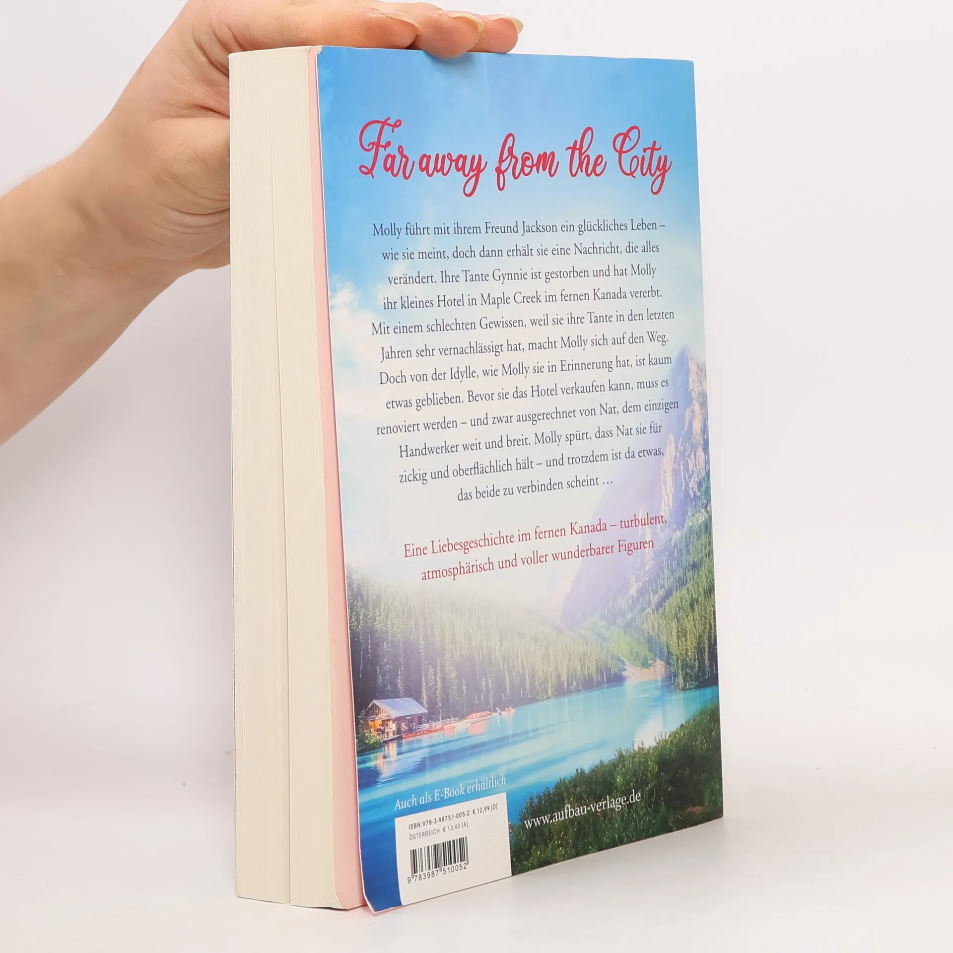 Far away from the city. Molly führt mit ihrem Freund Jackson ein glückliches Leben – wie sie meint, doch dann erhält sie eine Nachricht, die alles verändert. Ihre Tante Gynnie ist gestorben und hat Molly ihr kleines Hotel in Maple Creek im fernen Kanada vererbt. Mit einem schlechten Gewissen, weil sie ihre Tante in den letzten Jahren sehr vernachlässigt hat, macht Molly sich auf den Weg. Doch von der Idylle, wie Molly sie in Erinnerung hat, ist kaum etwas geblieben. Bevor sie das Hotel verkaufen kann, muss es renoviert werden – und zwar ausgerechnet von Nat, dem einzigen Handwerker weit und breit. Molly spürt, dass Nat sie für zickig und oberflächlich hält – und trotzdem ist da etwas, das beide zu verbinden scheint … Eine Liebesgeschichte im fernen Kanada – turbulent, atmosphärisch und voller wunderbarer Figuren. Auftakt der großen Maple Creek-Serie!