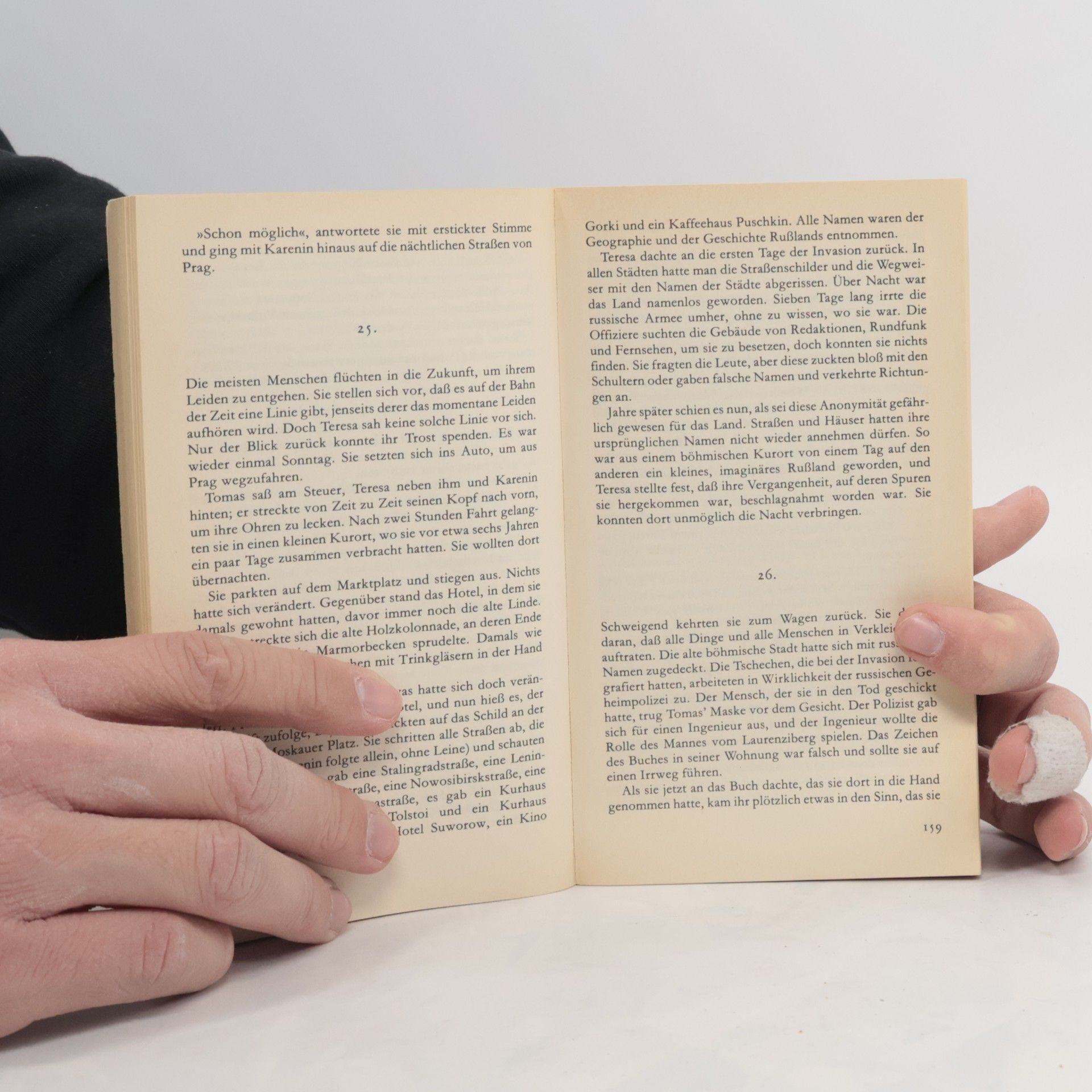 Milan Kundera: "Die unerträgliche Leichtigkeit des Seins". Roman. Aus dem Tschechischen von Susanna Roth. Fischer Taschenbuch Verlag, Frankfurt am Main 1987. Nr. 5992. 300 S., br., 9,80 DM