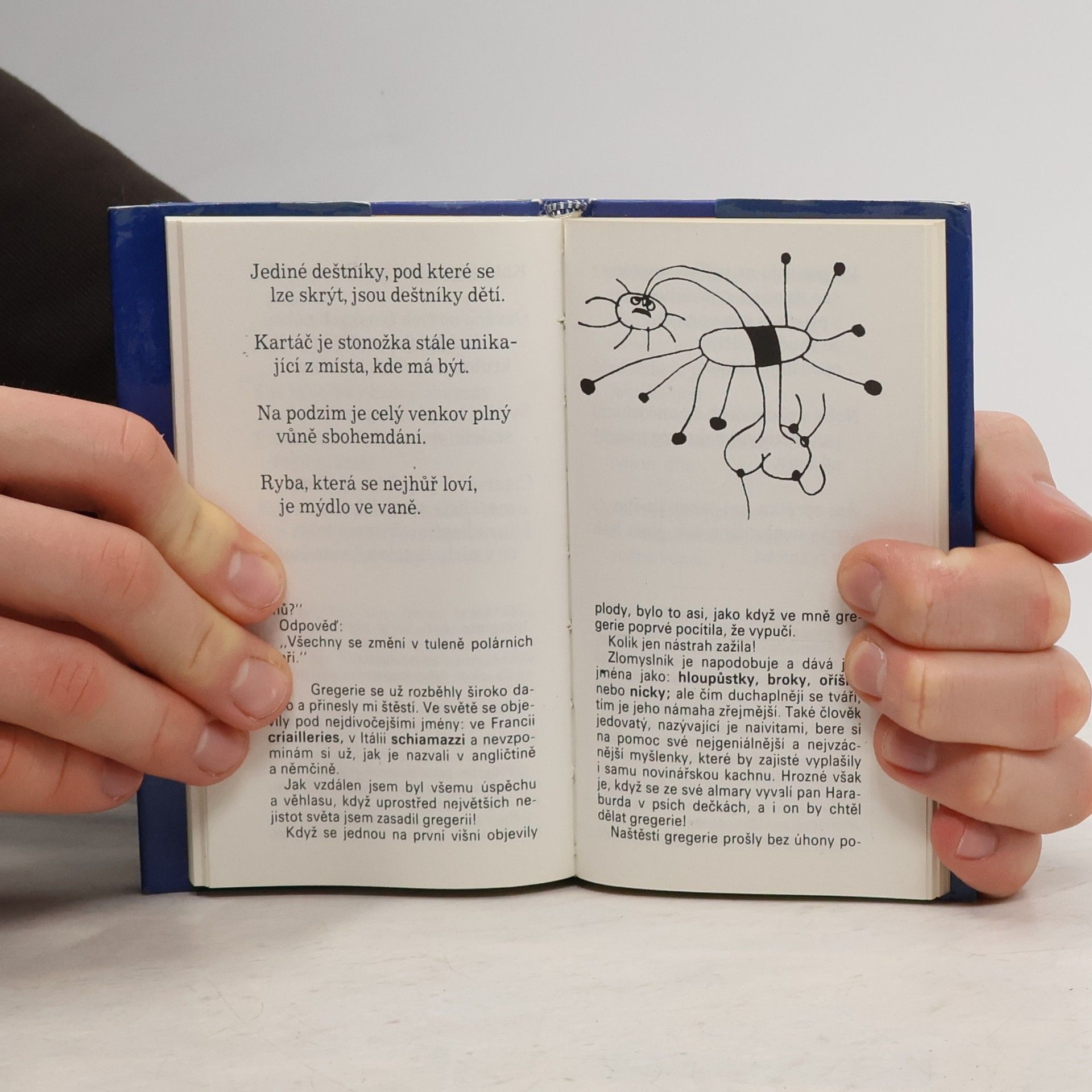 Stále moderní a objevný je jazykový vynález slavného španělského surrealisty. Gregerie je specifický literární útvar na pomezí zrnka moudrosti, sentence, vtipu, slovní hříčky, náhodně zaslechnuté věty, jazykového paradoxu či nonsensu – tohle všechno a mnohé jiné mohou, ovšem také nemusejí být gregerie.