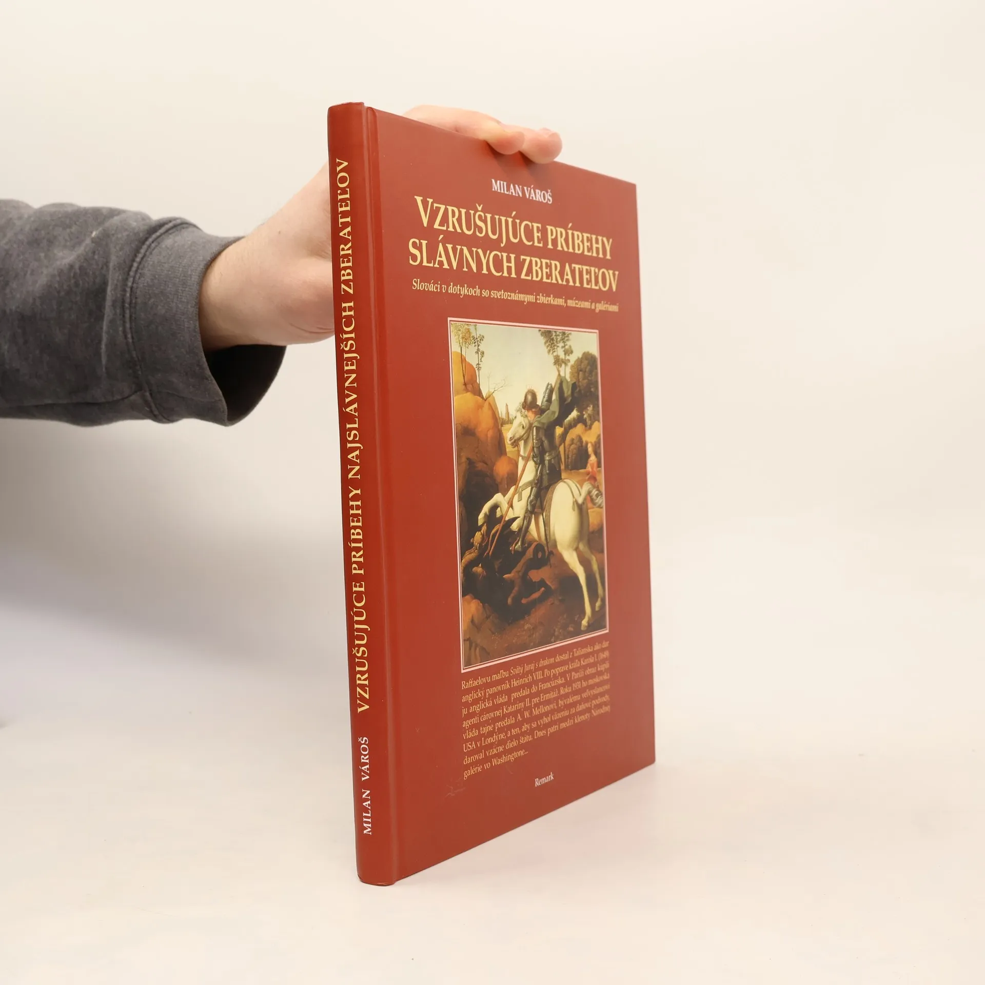 Slováci v dotykoch so svetoznámymi zbierkami, múzeami a galériami Ďalšia kniha známeho autora o najväčších zberateľoch. Pred čitateľmi defilujú zaujímavé príbehy bohatých zberateľov Rothschildovcov, amerického milionára a veľvyslanca v Londýne A. W. Mellona, ktorý v roku 1931 kúpil so súhlasom J. V. Stalina viaceré obrazy svetoznámych maliarov z Ermitráže a potom, aby sa vyhol väzeniu za daňové podvody, daroval ich Národnej galérii vo Washingtone. Aj v tejto práci sa autor usiluje o slovenský „dotyk“ s európskym maliarstvom. S Rothschildovcami spolupracoval chýrny maliar so slovenskými koreňmi Andy Warhol. V umeleckej zbierke vládcov Lichtenštajnska hľadal Vároš stopy po našom Jánovi Kupeckom a neznámom českom zberateľovi Arthurovi Meierovi... Autor uvádza aj pozadie predaja sochy pápeža Pavla V. zo zbierky slovenského umelca Ernesta Zmetáka do Múzea J. P. Gettyho v Los Angeles za 30 miliónov dolárov....