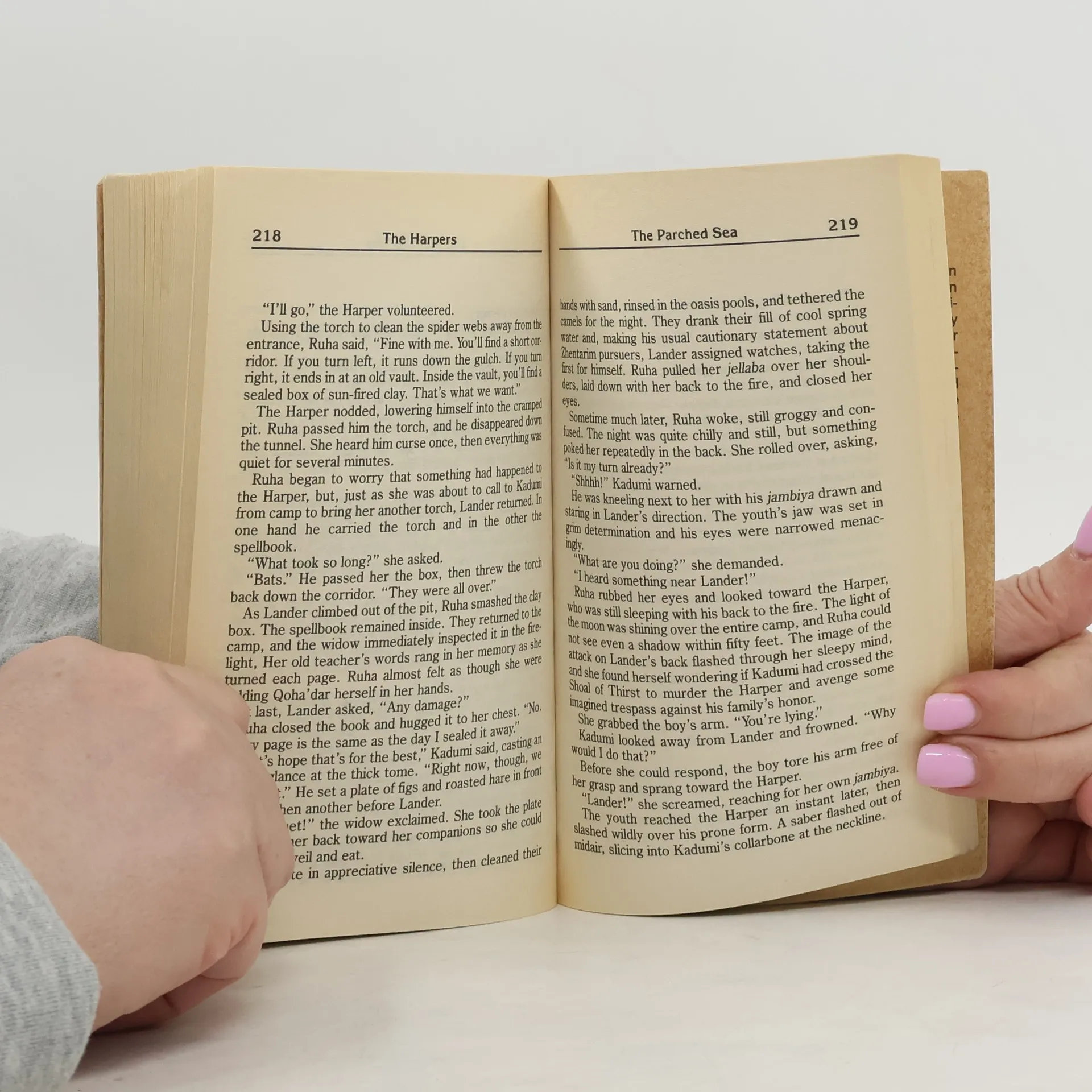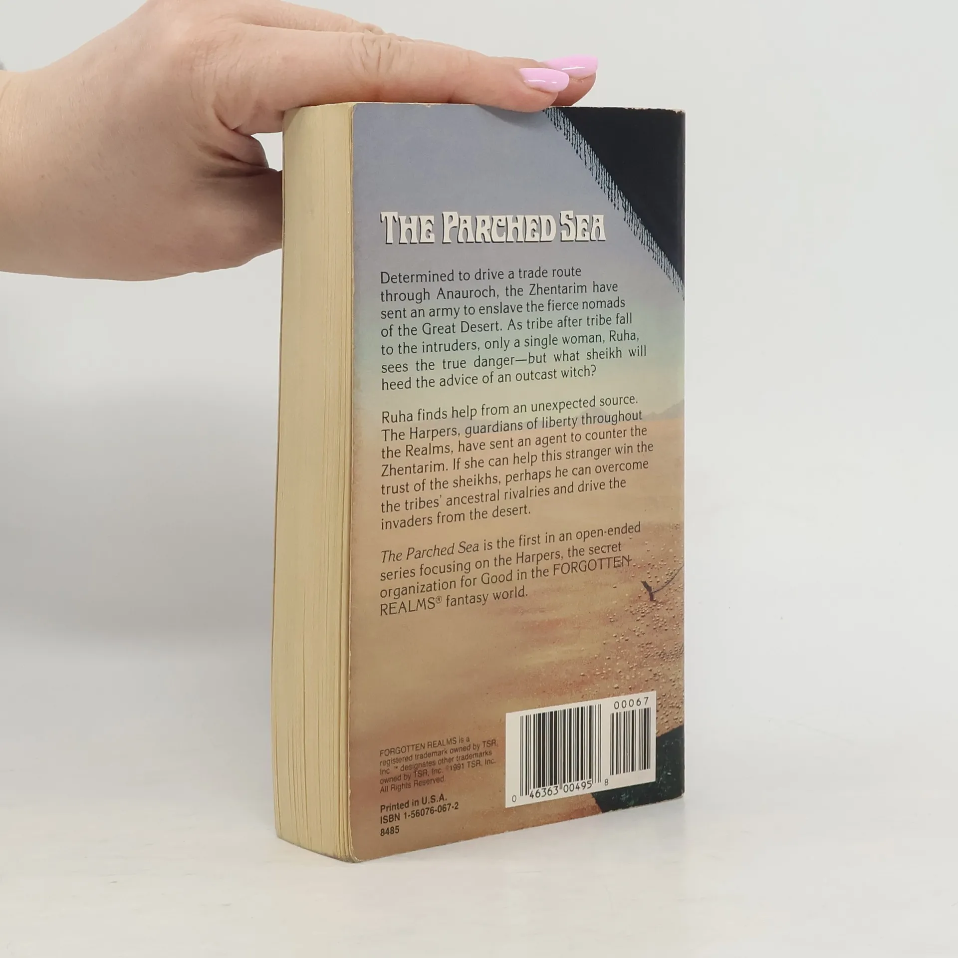 Determined to drive a trade route through Anauroch, the Zhentarim have sent an army to enslave the fierce nomads of the great desert. As tribe after tribe fall to the intruders, only a single woman, Rhua, sees the true danger—but what sheik will heed the advice of an outcast witch? Ruha finds help from an unexpected source. The Harpers, guardians of liberty throughout the Realms, have sent an agent to counter the Zhentarim. If she can help this stranger win the trust of the sheikhs, perhaps he can overcome the tribes’ ancestral rivalries and drive the invaders from the desert.