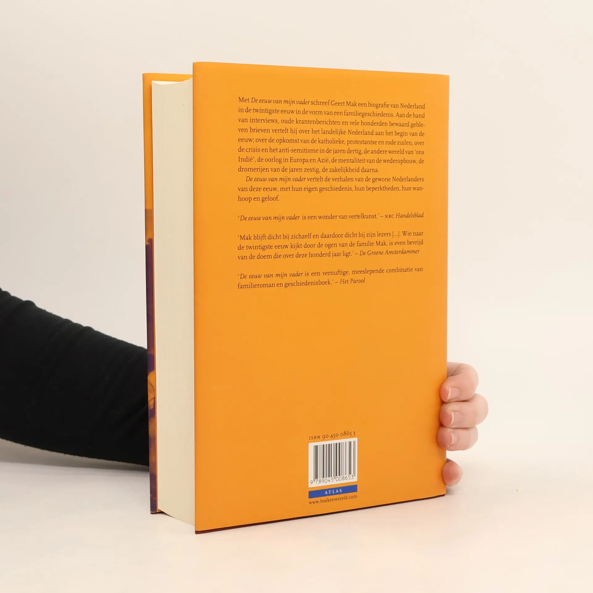 Wat verbindt ons met al diegenen die in de voorbije eeuw geleefd hebben? Is het niet hun menselijkheid, hun blindheid soms, meer nog dan hun grote en kleine heldendom? Geert Mak schreef een biografie van het Nederland van de twintigste eeuw in de vorm van een familiegeschiedenis. Aan de hand van interviews, oude krantenberichten en vele honderden bewaard gebleven brieven vertelt hij over het landelijke Nederland aan het begin van de eeuw, over de opkomst van de katholieke, protestantse en rode zuilen, over de crisis en het anti-semitisme in de jaren dertig, de andere wereld van 'ons Indië', de oorlog in Europa en Azië, de mentaliteit van de wederopbouw, de dromerijen van de jaren zestig, de zakelijkheid daarna. Het is een geschiedenis door de achterdeur, verteld vanuit de keuken van een doorsnee Nederlandse familie, die van Geert Mak zelf. Hoe ging men om met ziekte, seks en dood in 1910? Wat bezielde die merkwaardige emancipatiebeweging van de gereformeerde mannenbroeders? Hoe dachten de Nederlanders in hun tijd over grote historische gebeurtenissen als de Eerste Wereldoorlog, de machtsgreep van Hitler, de Duitse bezetting, de politionele acties? En hoe ging het daarna verder, met de rock-'n-roll, de televisie, de neergang van de zuilen, de auto, het geld?