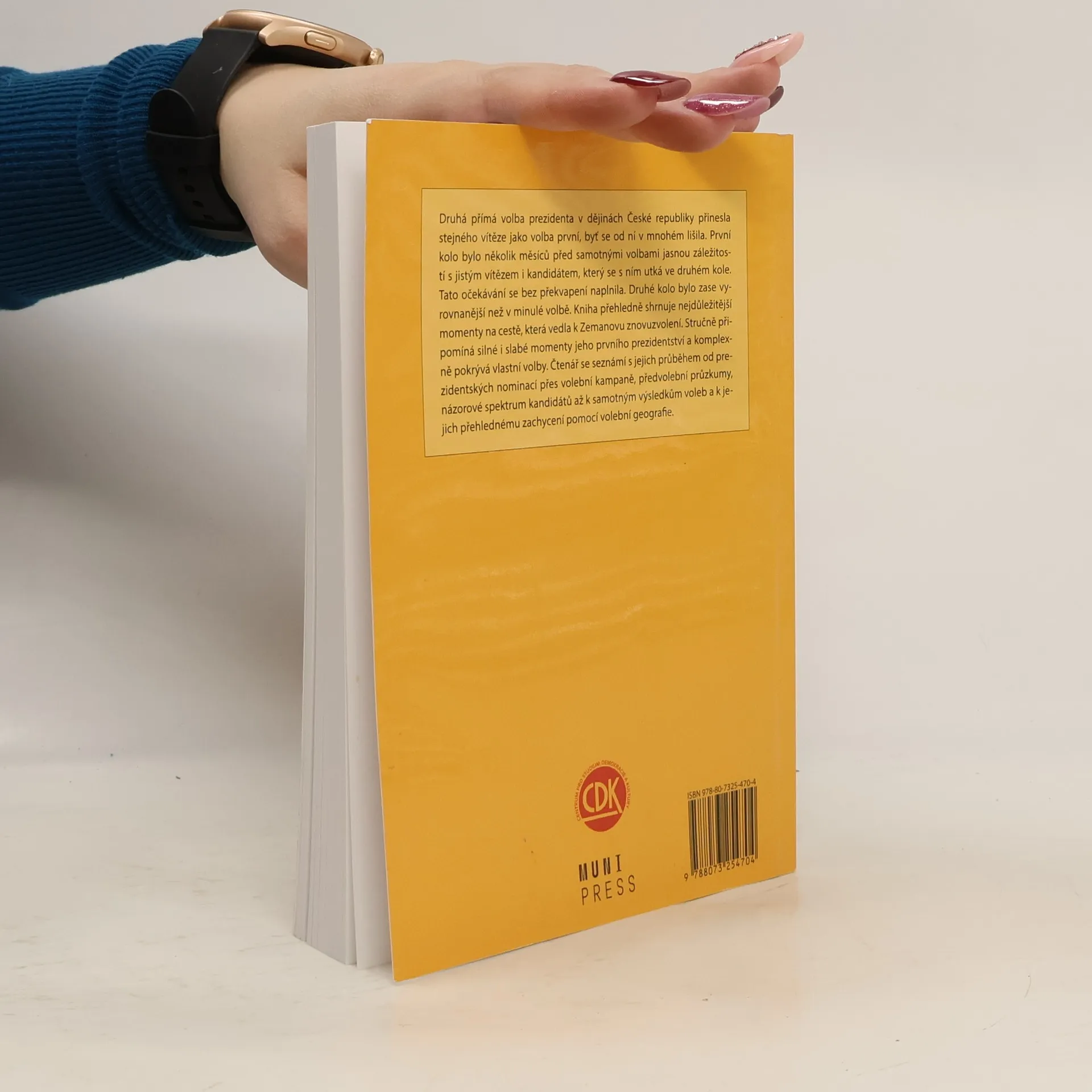 Druhá přímá volba prezidenta v dějinách České republiky přinesla stejného vítěze jako volba první, byť se od ní v mnohém lišila. První kolo bylo několik měsíců před samotnými volbami jasnou záležitostí s jistým vítězem i kandidátem, který se s ním utká ve druhém kole. Tato očekávání se bez překvapení naplnila. Druhé kolo bylo zase vyrovnanější než v minulé volbě. Kniha přehledně shrnuje nejdůležitější momenty na cestě, která vedla k Zemanovu znovuzvolení. Stručně připomíná silné i slabé momenty jeho prvního prezidentství a komplexně pokrývá vlastní volby. Čtenář se seznámí s jejich průběhem od prezidentských nominací přes volební kampaně, předvolební průzkumy, názorové spektrum kandidátů až k samotným výsledkům voleb a k jejich přehlednému zachycení pomocí volební geografie.
