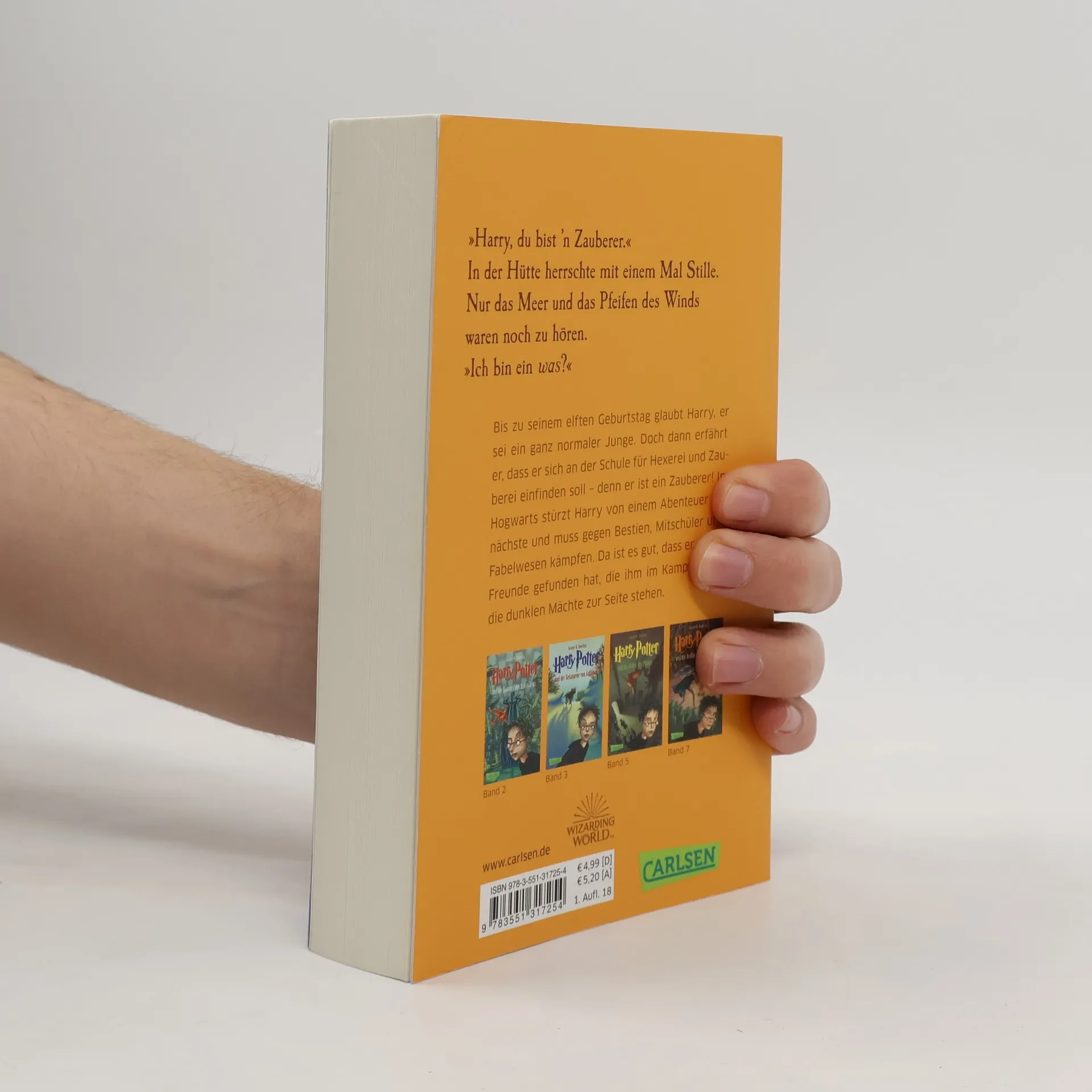 Bis zu seinem elften Geburtstag glaubt Harry, er sei ein ganz normaler Junge. Doch dann erfährt er, dass er sich an der Schule für Hexerei und Zauberei einfinden soll – denn er ist ein Zauberer! In Hogwarts stürzt Harry von einem Abenteuer ins nächste und muss gegen Bestien, Mitschüler und Fabelwesen kämpfen. Da ist es gut, dass er schon Freunde gefunden hat, die ihm im Kampf gegen die dunklen Mächte zur Seite stehen. Dies ist der erste Band der international erfolgreichen Harry-Potter-Serie, die Generationen geprägt hat. Alle Bände der Serie: Harry Potter und der Stein der WeisenHarry Potter und die Kammer des SchreckensHarry Potter und der Gefangene von AskabanHarry Potter und der FeuerkelchHarry Potter und der Orden des PhönixHarry Potter und der HalbblutprinzHarry Potter und die Heiligtümer des Todes Die Harry-Potter-Serie ist abgeschlossen.
