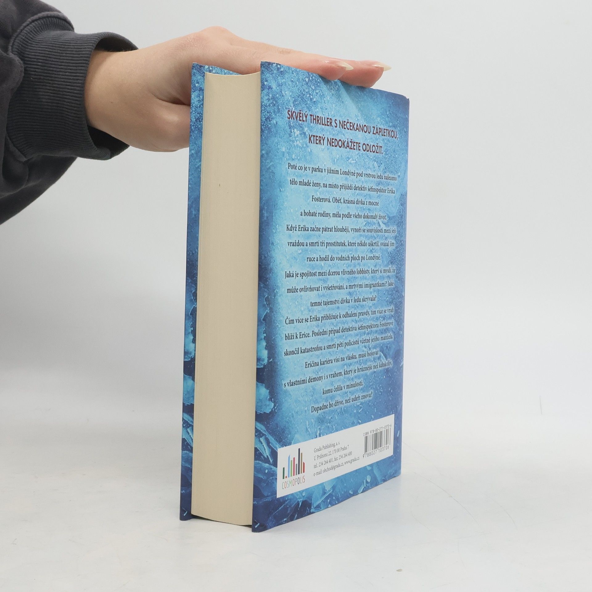 Poté co je v parku v jižním Londýně pod vrstvou ledu nalezeno tělo mladé ženy, na místo přijíždí detektiv šéfinspektor Erika Fosterová. Oběť, krásná dívka z mocné a bohaté rodiny, měla podle všeho dokonalý život. Když Erika začne pátrat hlouběji, vynoří se souvislosti mezi její vraždou a smrtí tří prostitutek, které někdo uškrtil, svázal jim ruce a hodil do vodních ploch po Londýně. Jaká je spojitost mezi dcerou vlivného lobbisty, který si myslí, že může ovlivňovat i vyšetřování, a mrtvými imigrantkami? Jaké temné tajemství dívka v ledu skrývala? Čím více se Erika přibližuje k odhalení pravdy, tím více se vrah blíží k Erice. Poslední případ detektiva šéfinspektora Fosterové skončil katastrofou a smrtí pěti policistů včetně jejího manžela. Eričina kariéra visí na vlásku, musí bojovat s vlastními démony i s vrahem, který je hrůznější než kdokoliv, komu čelila v minulosti. Dopadne ho dříve, než udeří znovu?