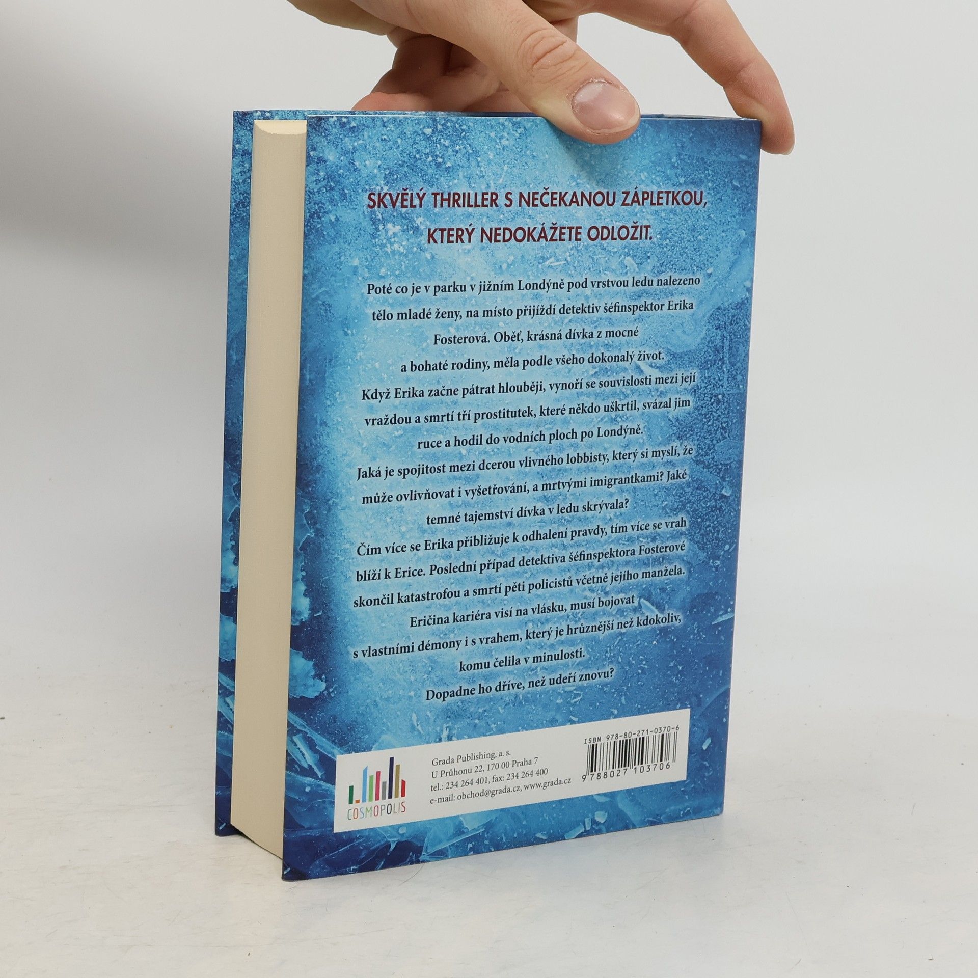 Poté co je v parku v jižním Londýně pod vrstvou ledu nalezeno tělo mladé ženy, na místo přijíždí detektiv šéfinspektor Erika Fosterová. Oběť, krásná dívka z mocné a bohaté rodiny, měla podle všeho dokonalý život. Když Erika začne pátrat hlouběji, vynoří se souvislosti mezi její vraždou a smrtí tří prostitutek, které někdo uškrtil, svázal jim ruce a hodil do vodních ploch po Londýně. Jaká je spojitost mezi dcerou vlivného lobbisty, který si myslí, že může ovlivňovat i vyšetřování, a mrtvými imigrantkami? Jaké temné tajemství dívka v ledu skrývala? Čím více se Erika přibližuje k odhalení pravdy, tím více se vrah blíží k Erice. Poslední případ detektiva šéfinspektora Fosterové skončil katastrofou a smrtí pěti policistů včetně jejího manžela. Eričina kariéra visí na vlásku, musí bojovat s vlastními démony i s vrahem, který je hrůznější než kdokoliv, komu čelila v minulosti. Dopadne ho dříve, než udeří znovu?