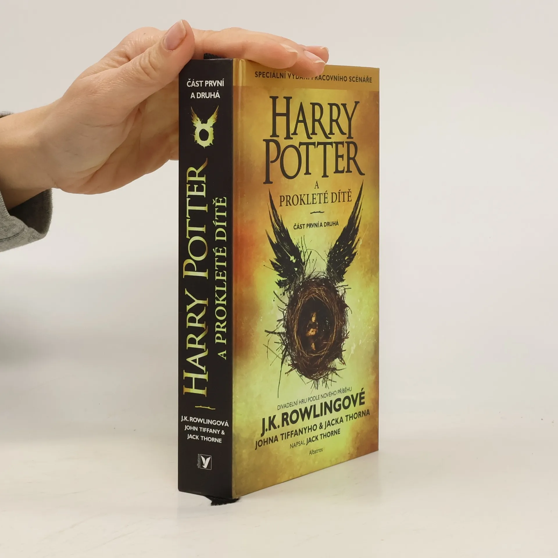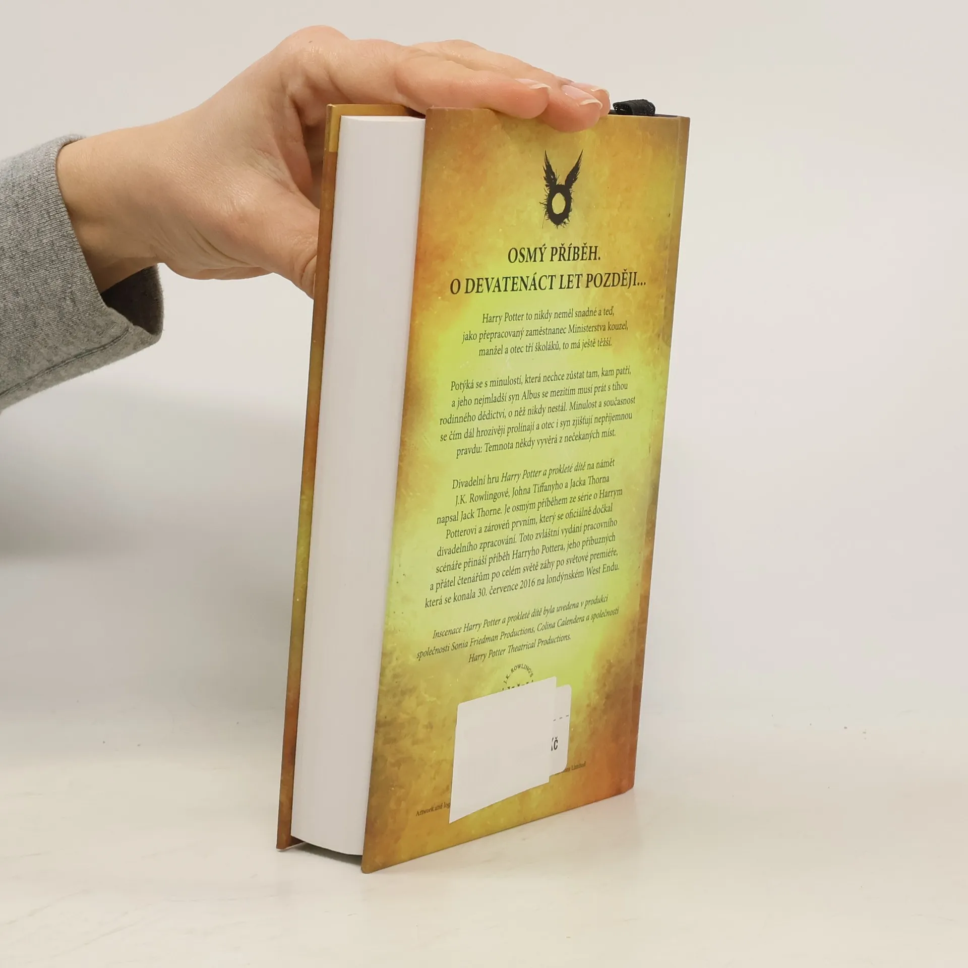 Speciální vydání pracovního scénáře. Harry Potter to nikdy neměl snadné a teď, jako přepracovaný zaměstnanec Ministerstva kouzel, manžel a otec tří školáků, to má ještě těžší. Potýká se s minulostí, která nechce zůstat tam, kam patří, a jeho nejmladší syn Albus se mezitím musí prát s tíhou rodinného dědictví, o které nikdy nestál. Minulost a současnost se čím dál hrozivěji prolínají a otec i syn zjišťují nepříjemnou pravdu: temnota někdy vyvěrá z nečekaných míst. Divadelní hru Harry Potter a prokleté dítě na námět J.K. Rowlingové, Johna Tiffanyho a Jacka Thornea napsal Jack Thorne. Je osmým příběhem ze série o Harrym Potterovi a zároveň prvním, který se oficiálně dočkal divadelního zpracování.