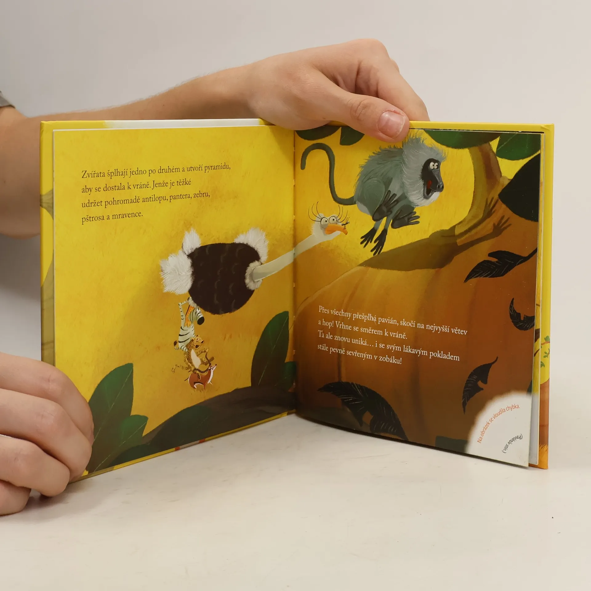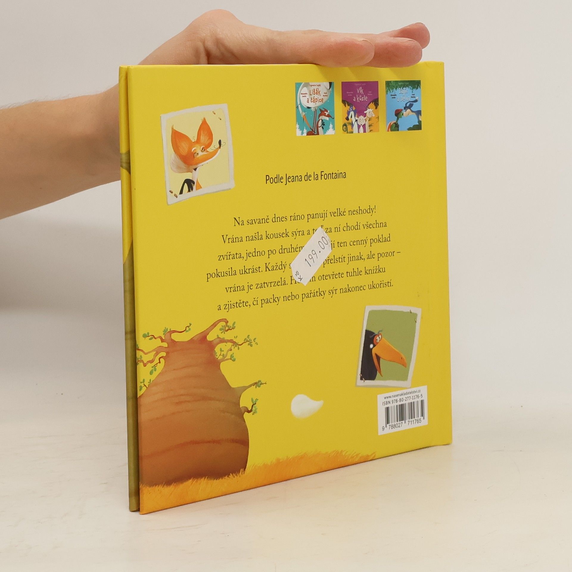 Klasická bajka převyprávěná pro předškolní děti v doprovodu celostránkových ilustrací. Na savaně dnes ráno panují velké neshody! Vrána našla kousek sýra a teď za ní chodí všechna zvířata, jedno po druhém, aby se jí ten cenný poklad pokusila ukrást. Každý ji zkouší přelstít jinak, ale pozor - vrána je zatvrzelá. Nakladatelská anotace. Kráceno.