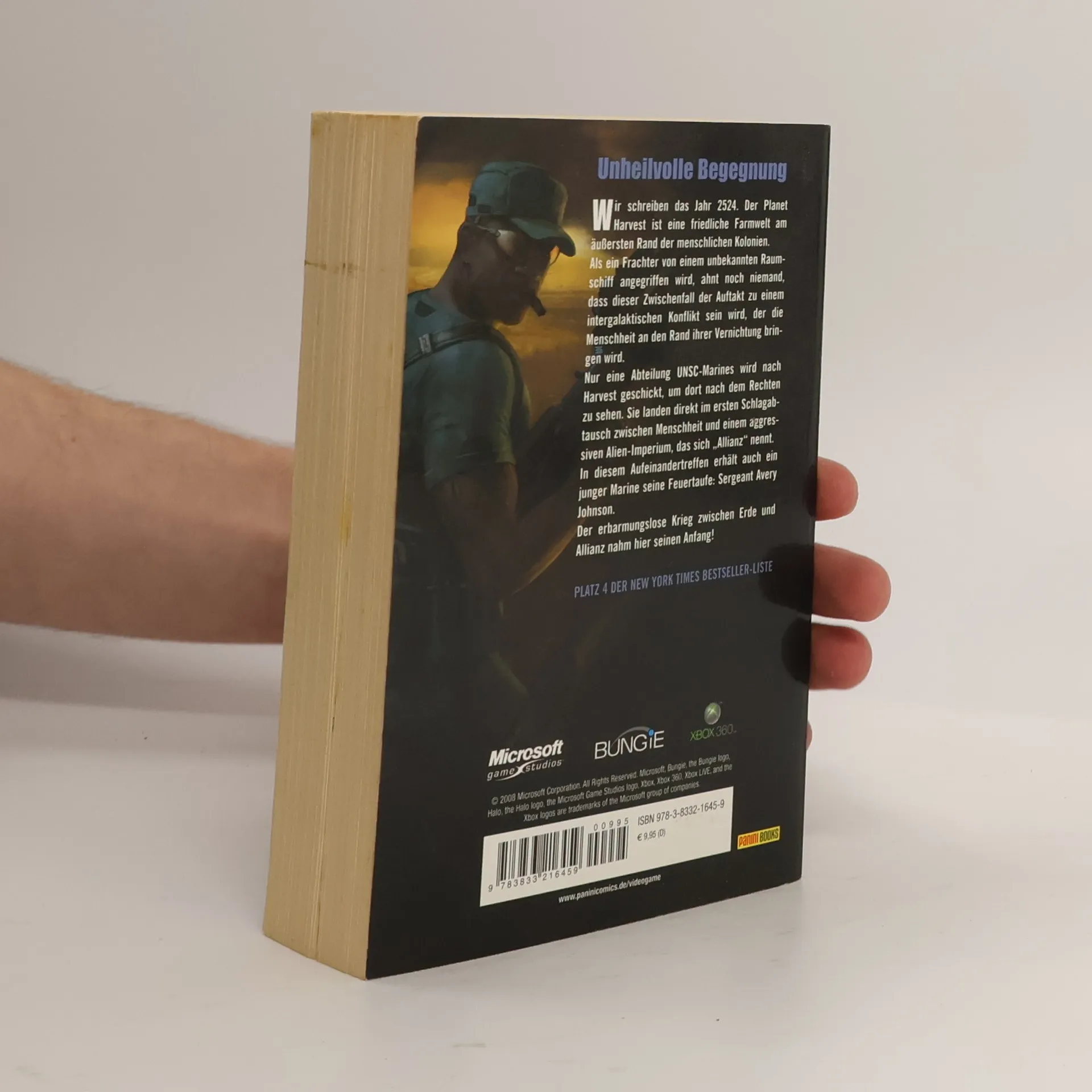 Unheilvolle Begegnung Wir schreiben das Jahr 2524. Der Planet Harvest ist eine friedliche Farmwelt am äußersten Rand der menschlichen Kolonien. Als ein Frachter von einem unbekannten Raumschiff angegriffen wird, ahnt noch niemand, dass dieser Zwischenfall der Auftakt zu einem intergalaktischen Konflikt sein wird, der die Menschheit an den Rand ihrer Vernichtung bringen wird. Nur eine Abteilung UNSC-Marines wird nach Harvest geschickt, um dort nach dem Rechten zu sehen. Sie landen direkt im ersten Schlag abtausch zwischen Menschheit und einem aggressiven Alien-Imperium, das sich „Allianz“ nennt. In diesem Aufeinandertreffen erhält auch ein junger Marine seine Feuertaufe: Sergeant AveryJohnson. Der erbarmungslose Krieg zwischen Erde und Allianz nahm hier seinen Anfang! PLATZ 4 DER NEW YORK TIMES BESTSELLER-LISTE